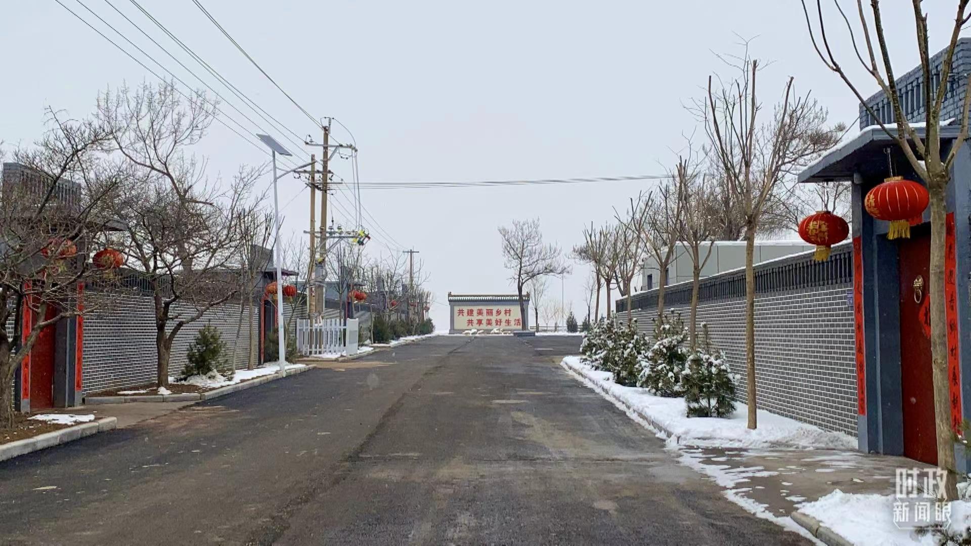 △馮南垣村修繕一新的大路,遠處的標語寫著“共建美麗鄉(xiāng)村 共享美好生活”。(總臺央視記者馬超拍攝)