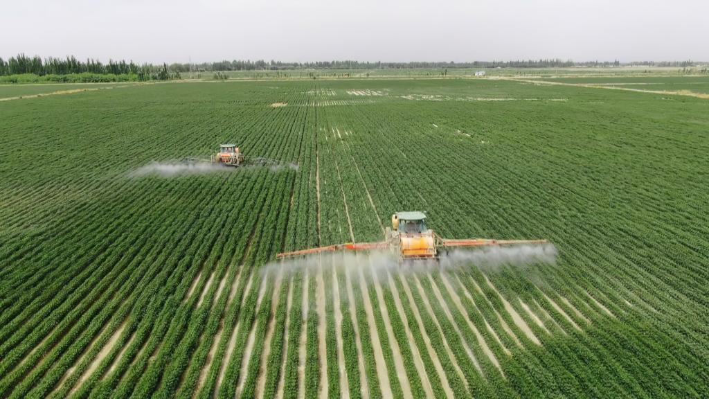 沙雅縣大田里作業(yè)的大型機械。(受訪者供圖)