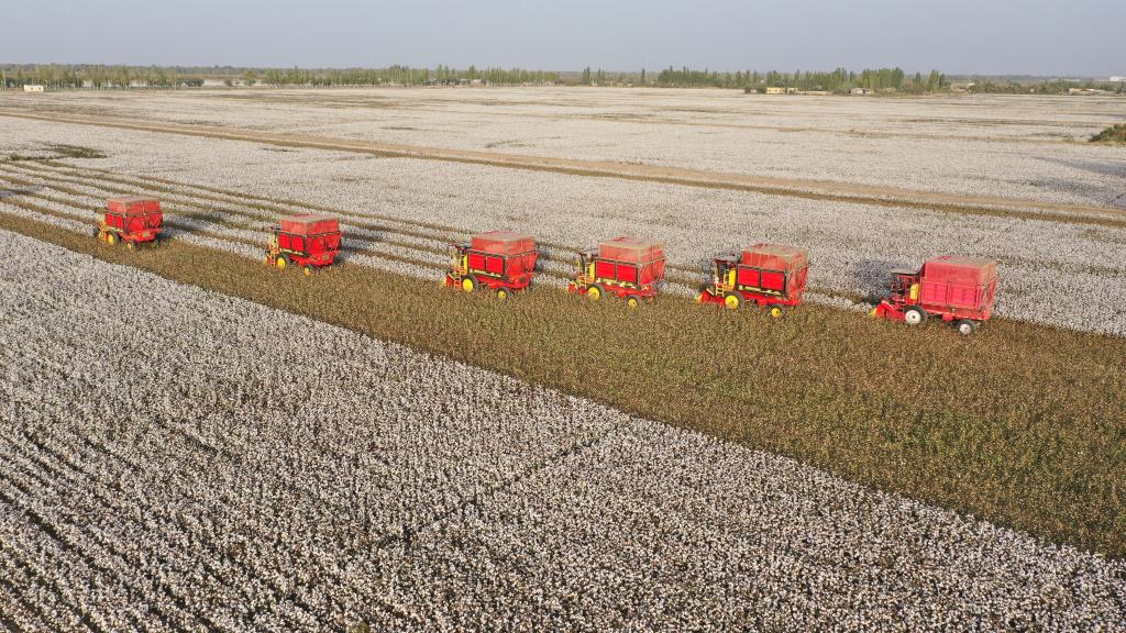 沙雅縣棉田里的采棉機。(受訪者供圖)