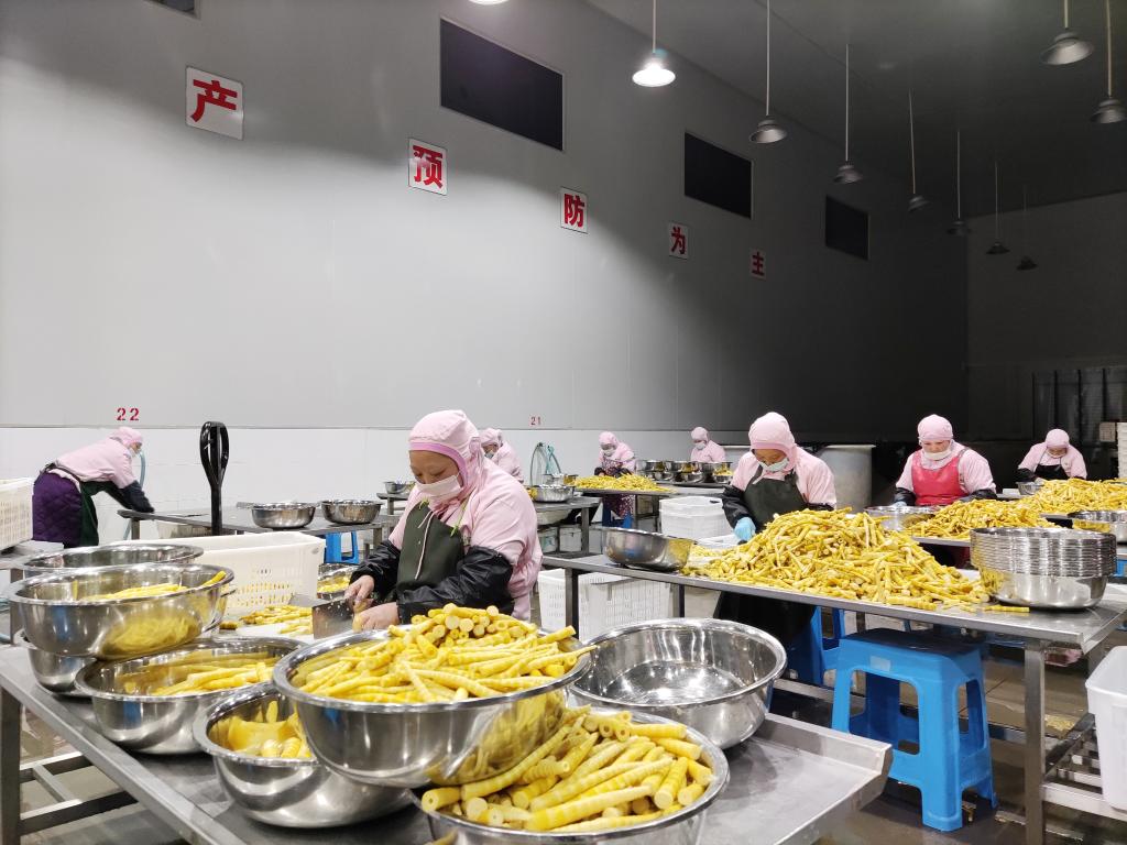 在碗廠鎮(zhèn)農特產品產業(yè)園,竹筍加工廠多條生產線有序運轉。