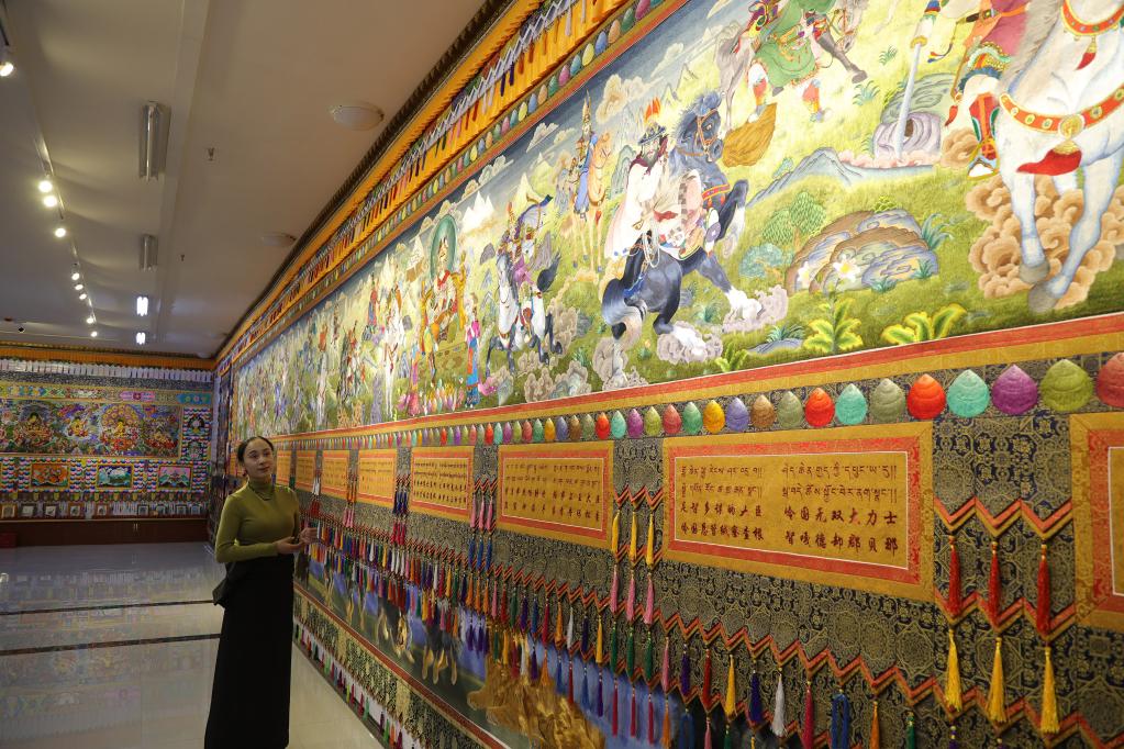 平滑的線條、細(xì)膩的針腳、傳統(tǒng)的繡法、新穎的設(shè)計……繡坊內(nèi),繡娘們聚精會神穿針引線,拉毛葉忠仔細(xì)檢查繡娘們的作品,用藏繡技藝講述格薩爾王的故事是一次創(chuàng)新。