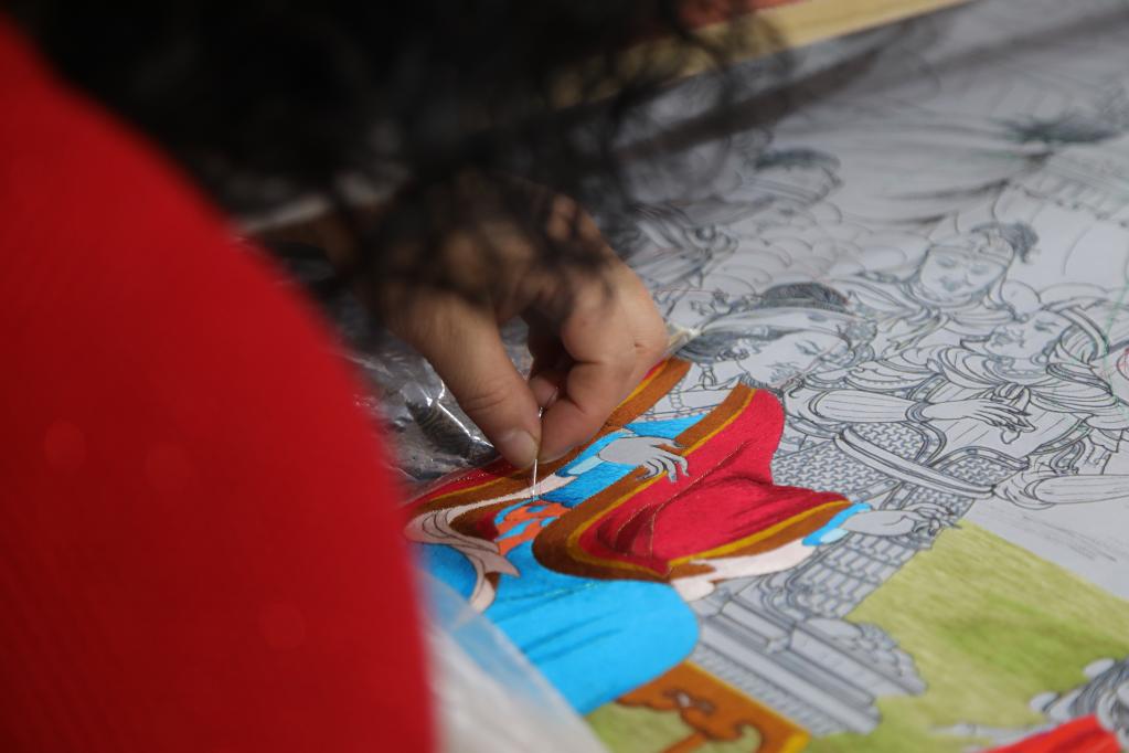 拉毛葉忠介紹,這些年,當(dāng)?shù)卣?jīng)常組織民間藝人去考察學(xué)習(xí)湘繡、蘇繡、粵繡、蜀繡等中國四大繡的針法,讓藏繡技藝推陳出新,更加凸顯出藏繡自身蘊含的特色。
