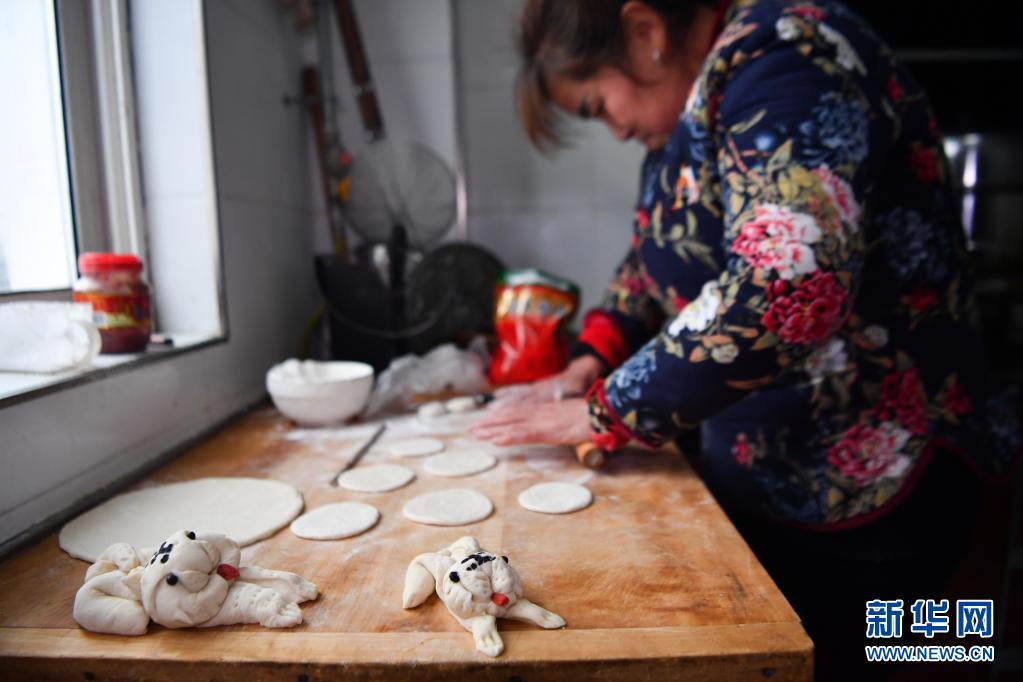1月27日,西安市鄠邑區(qū)幸福佳苑社區(qū)居民制作花饃。新華社記者 張博文 攝