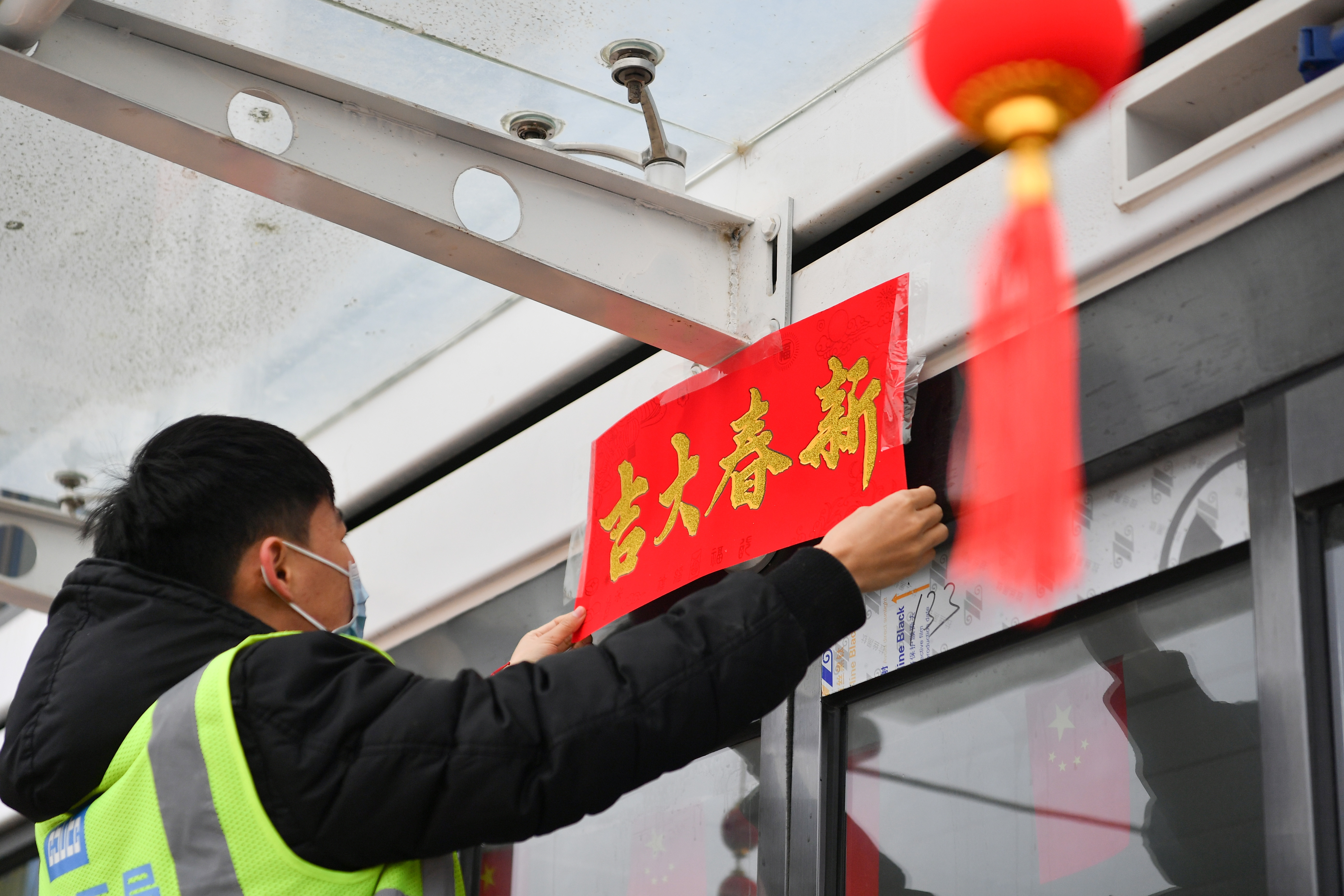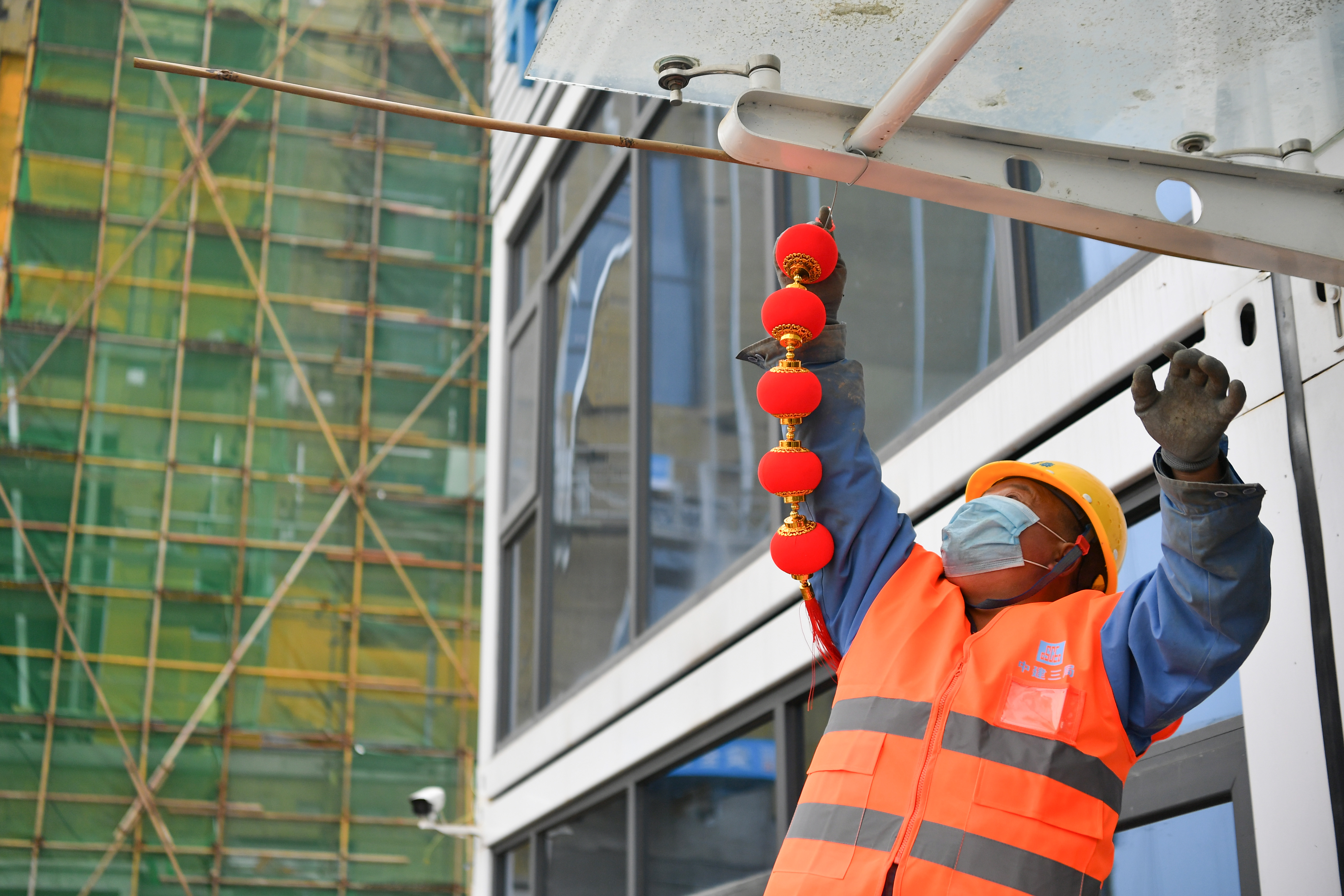 當(dāng)日是農(nóng)歷臘月二十八,在陜西省西安市第一實(shí)驗(yàn)學(xué)校建設(shè)項(xiàng)目工地,留守工地的建設(shè)者用貼春聯(lián)、掛燈籠等方式,迎接佳節(jié)的到來(lái)。