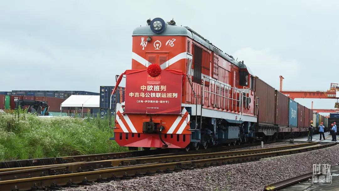 △2021年7月,長三角首趟“中吉烏”公鐵聯(lián)運中歐班列從浙江義烏啟程,奔赴吉爾吉斯斯坦、烏茲別克斯坦。(圖/視覺中國)