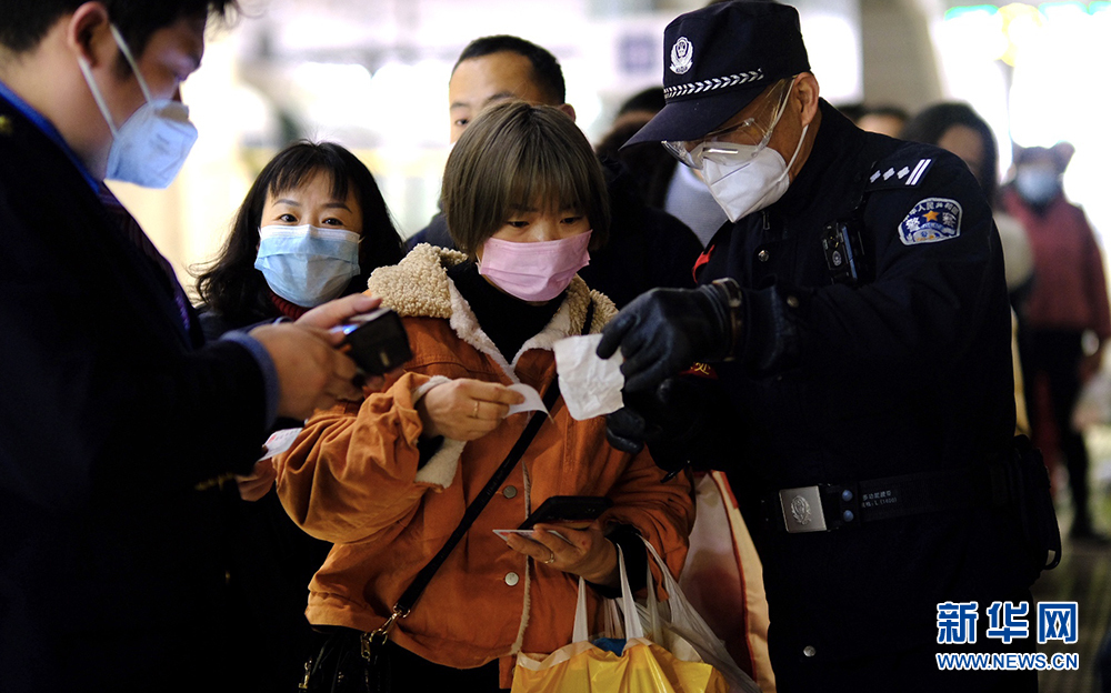 乘警蔣大兵引導(dǎo)乘客有序登車(chē)。新華網(wǎng)發(fā) 賀瑞明攝