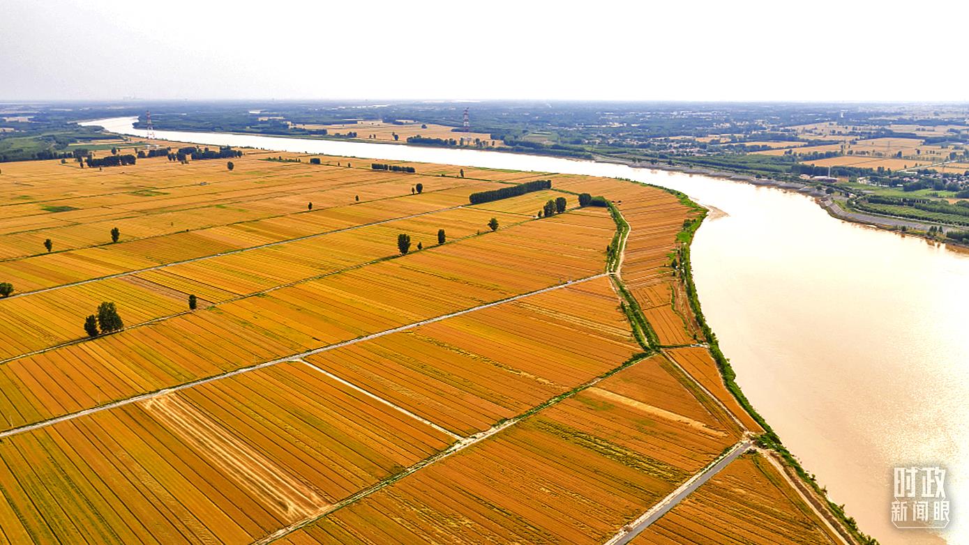△山東濱州,黃河灘區(qū)迎來麥?zhǔn)铡?021年,我國(guó)糧食產(chǎn)量已連續(xù)7年保持在1.3萬億斤以上。(圖/視覺中國(guó))