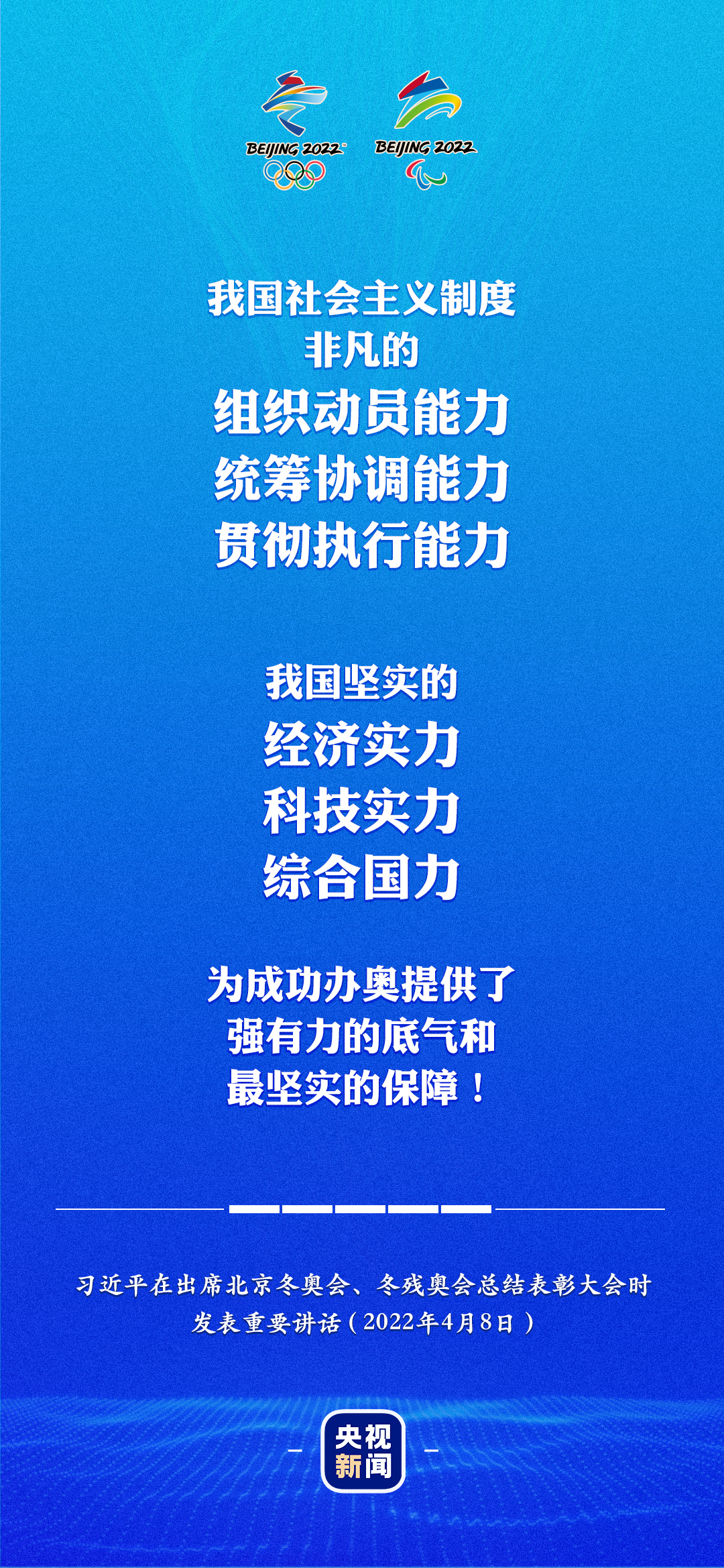 第一,堅(jiān)持黨的集中統(tǒng)一領(lǐng)導(dǎo)。黨中央高度重視北京冬奧會、冬殘奧會,成立冬奧會工作領(lǐng)導(dǎo)小組,從國家層面統(tǒng)籌力量、協(xié)調(diào)推進(jìn)籌辦工作?;I辦之初,黨中央就明確提出綠色、共享、開放、廉潔的辦奧理念。面對嚴(yán)峻復(fù)雜的全球疫情,在全面分析國內(nèi)外形勢特別是疫情影響基礎(chǔ)上,作出“順利舉辦即成功”的科學(xué)判斷,提出“簡約、安全、精彩”的辦賽要求。廣大黨員、干部牢記初心使命 ,以行動踐行了“急難險(xiǎn)重任務(wù),我在第一線”的誓言。事實(shí)充分證明,中國共產(chǎn)黨是我們成就偉業(yè)最可靠的主心骨,只要始終不渝堅(jiān)持黨的領(lǐng)導(dǎo),就一定能夠戰(zhàn)勝前進(jìn)道路上的任何艱難險(xiǎn)阻,就一定能夠辦成我們想辦的任何事情!