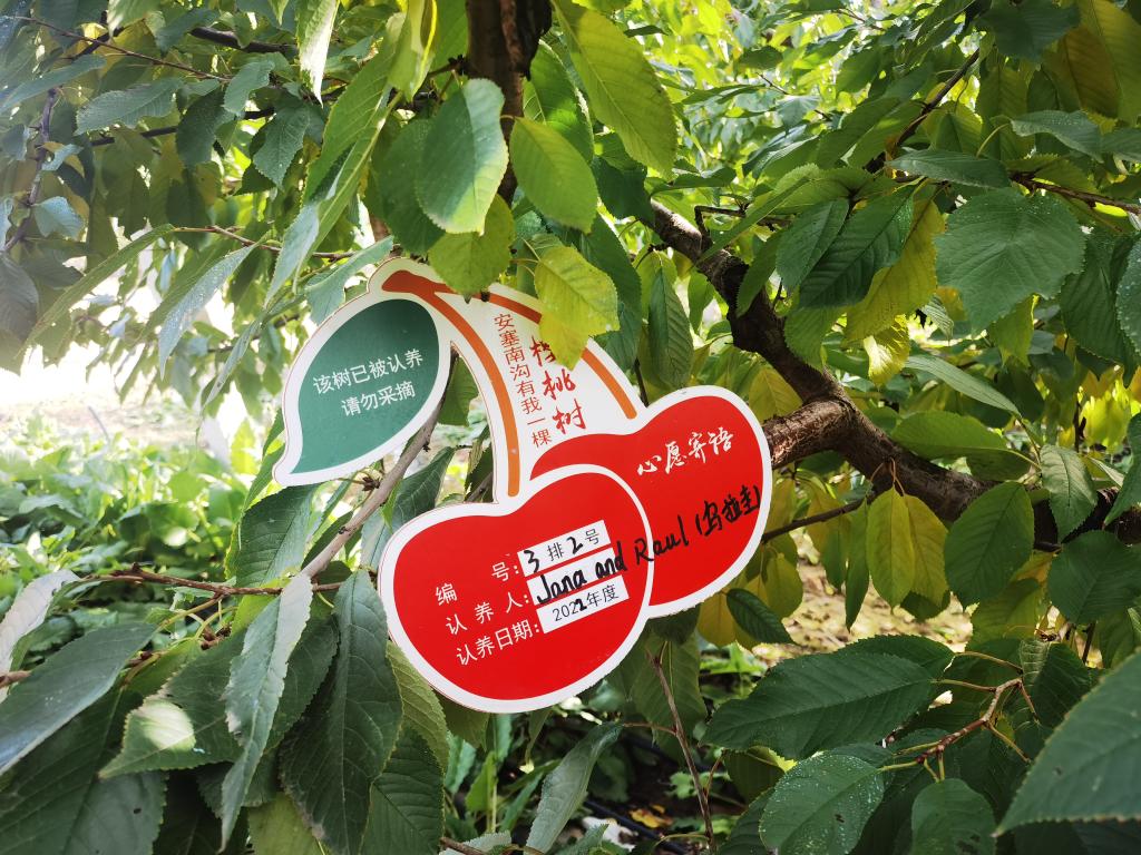 延安市安塞區(qū)高橋鎮(zhèn)南溝村的櫻桃園里,被國(guó)外消費(fèi)者認(rèn)養(yǎng)的櫻桃樹(shù)。受訪者供圖