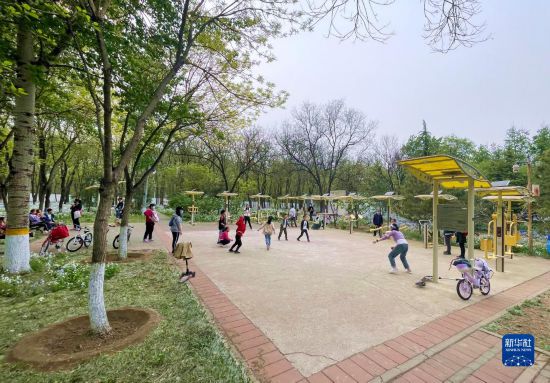 4月17日,市民在京城森林公園內(nèi)休閑運(yùn)動(dòng)。