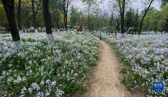4月17日拍攝的鮮花盛開的京城森林公園。