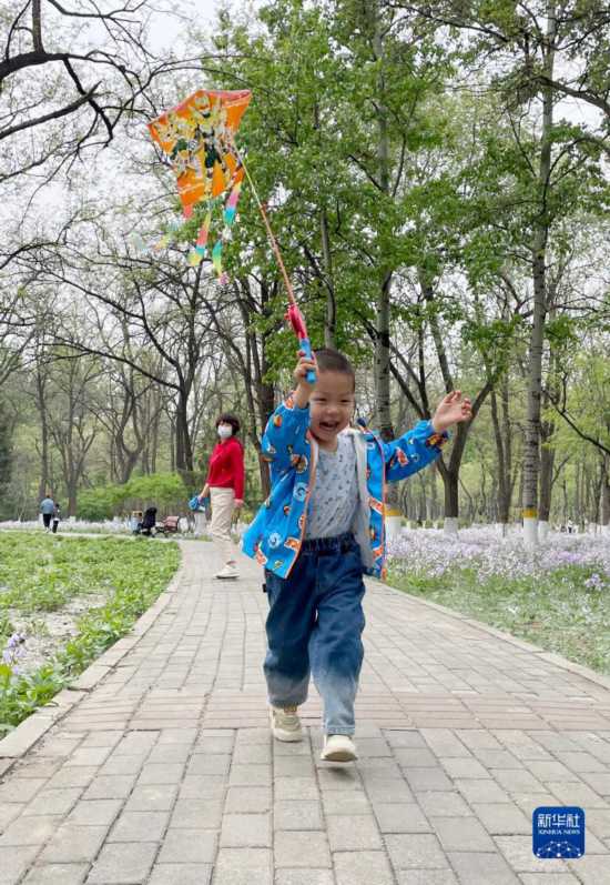 4月17日,市民帶著孩子在京城森林公園內(nèi)玩耍。