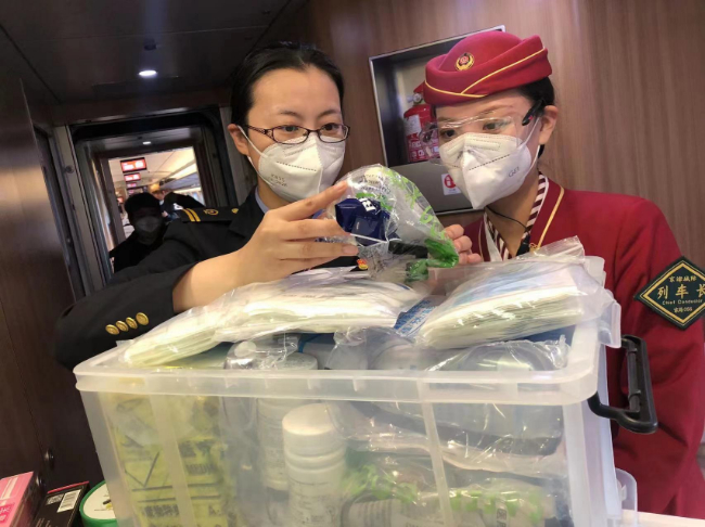 楊珺通常是早上5點(diǎn)剛過(guò),就早早來(lái)到天津站站臺(tái),等候登上早上6點(diǎn)半左右的第一班列車檢查乘務(wù)工作。疫情以來(lái),楊珺總是習(xí)慣“早到一點(diǎn)”,充分利用這段“慢節(jié)奏”時(shí)間,靜下心來(lái)把近期的重點(diǎn)工作梳理清楚,編輯成微信溫馨提示發(fā)送給即將出乘的班組,方便大家閱讀學(xué)習(xí)。列車一到站臺(tái),楊珺就和出乘的班組一同登上列車,開始了細(xì)致的檢查,車廂衛(wèi)生,備品擺放,物品定型,設(shè)備設(shè)施的狀況,防疫用品的配備,“勞動(dòng)節(jié)假期快要到了,客流量會(huì)比往日增加,這期間我們一定要比平時(shí)更加細(xì)致,像座位扶手、垃圾箱、門把手,只要是旅客頻繁接觸的位置,都必須逐一落實(shí)消毒要求……”每走到一個(gè)車廂,楊珺都會(huì)一遍又一遍地叮囑,并且和乘務(wù)員一起落實(shí)所在區(qū)域的重點(diǎn)安全工作。