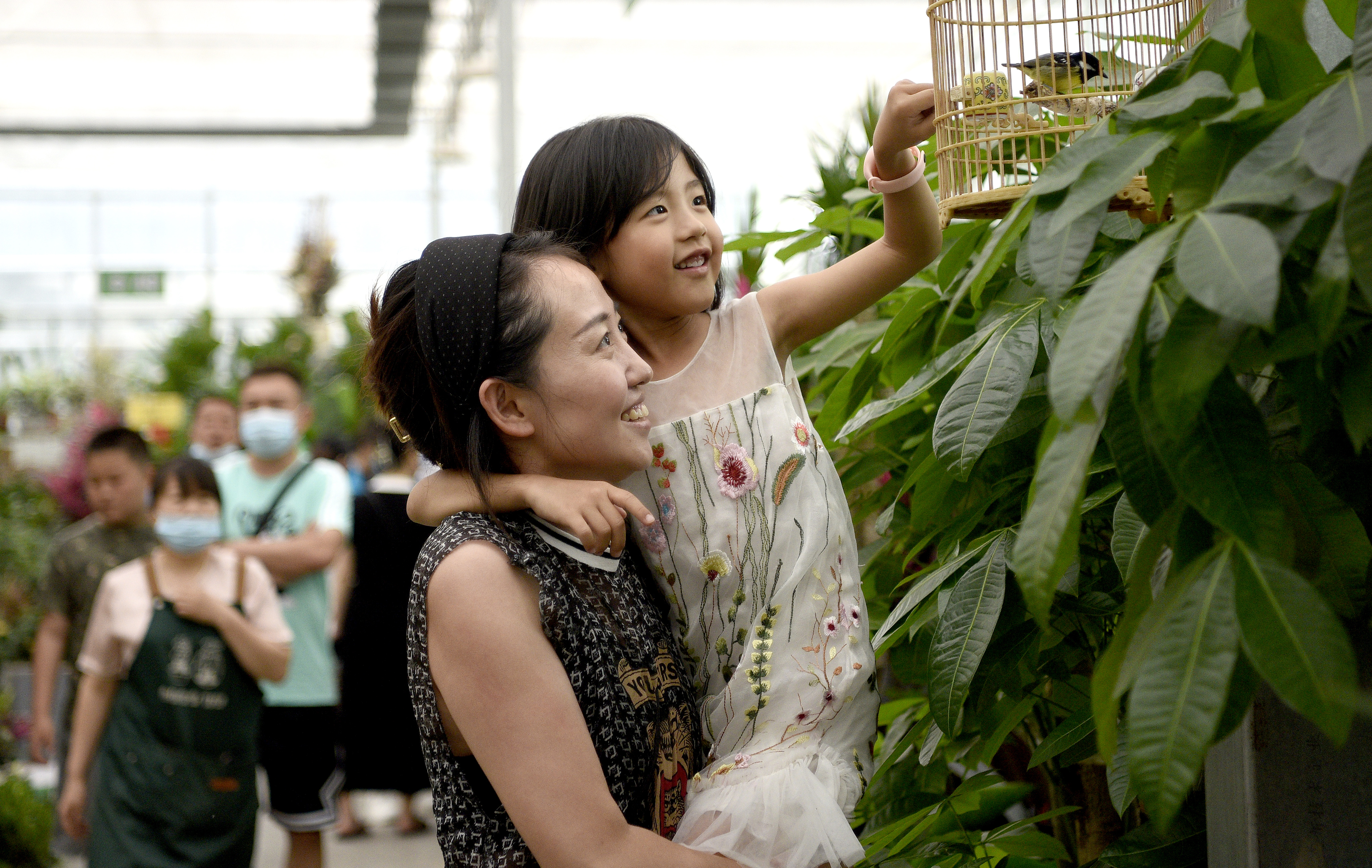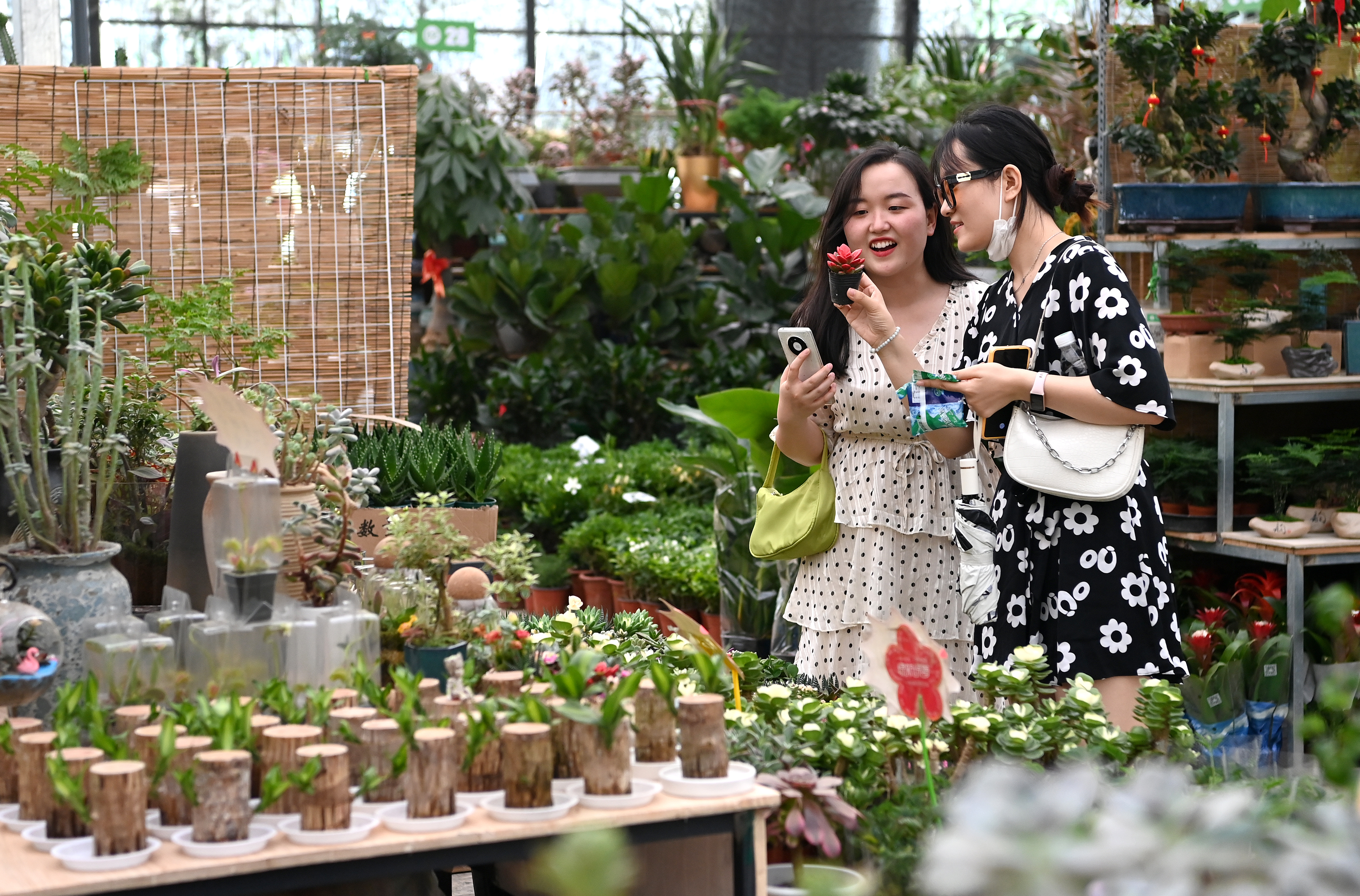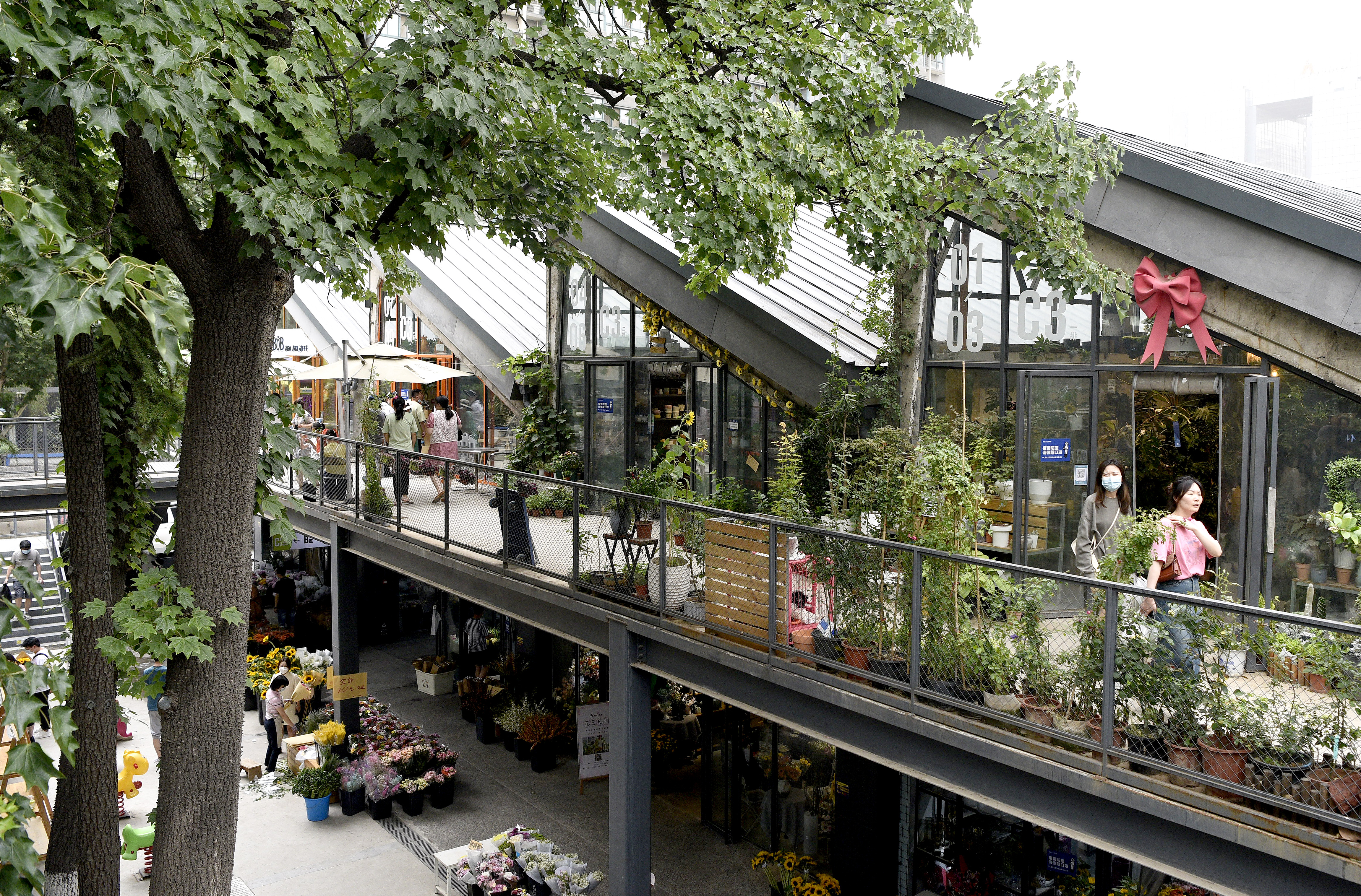 5月29日,市民在西安際華3511文創(chuàng)科技園內(nèi)的花市休閑。 新華社記者 劉瀟 攝