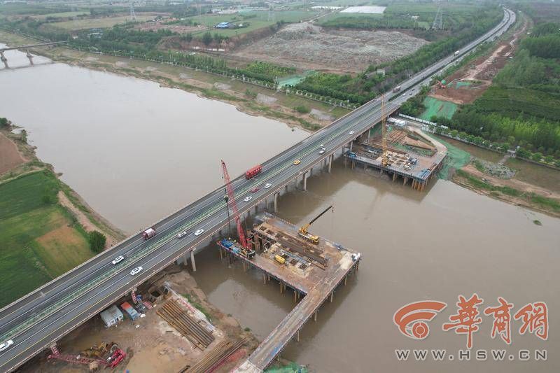 5月29日,在京昆改擴建項目六標段港務區(qū)大橋施工現(xiàn)場,可以看到此處正準備架設(shè)橋梁。一邊是繼續(xù)通行的京昆高速,一邊是繁忙的建設(shè)工地,“這里是路基改橋施工,橋?qū)牡胤降缆飞戏娇邕^去。”京昆改擴建項目六標段常務副總工余偉介紹,目前高速公路在地方道路紡渭路下面,完成后兩條路將倒換位置。