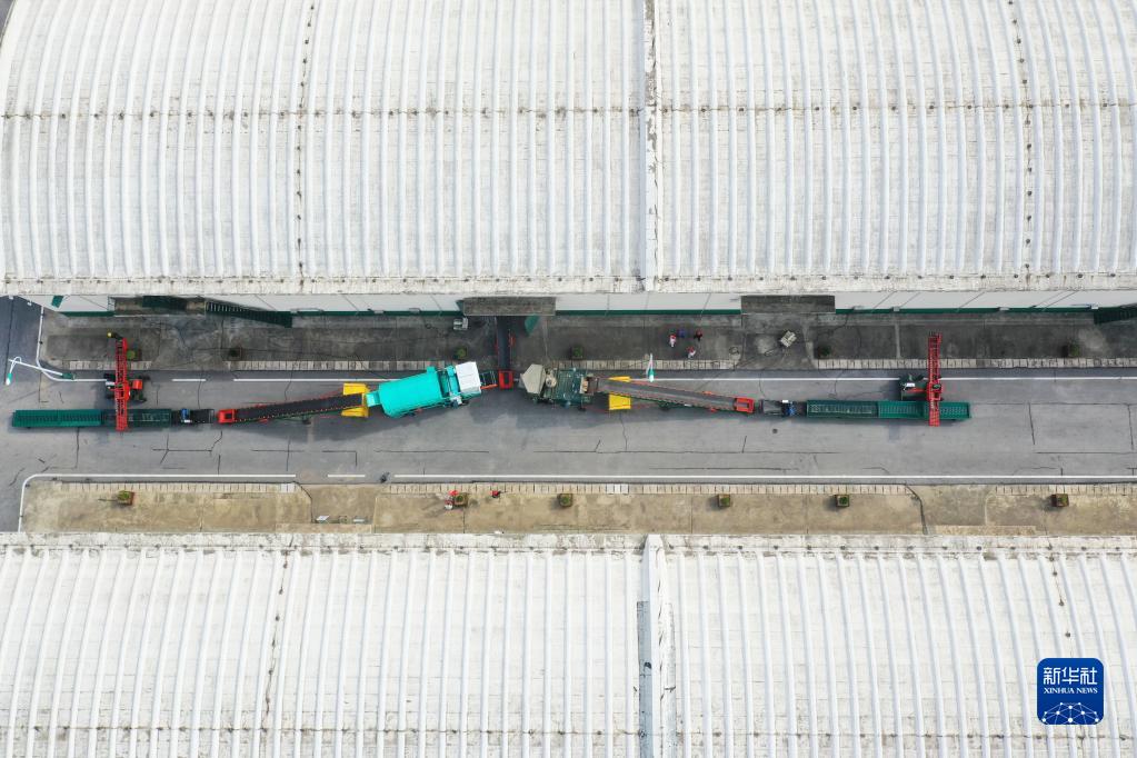 5月24日,在中央儲備糧鄧州直屬庫有限公司內(nèi),糧食入庫全套流程設(shè)備已架設(shè)完畢(無人機(jī)照片)。新華社記者 張浩然 攝