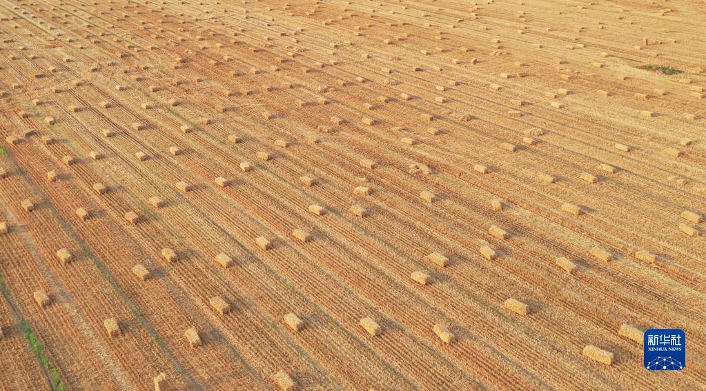 這是6月8日在河南省安陽市滑縣小鋪鄉(xiāng)界河路村拍攝的打捆的麥秸(無人機(jī)照片)。新華社記者 張浩然 攝