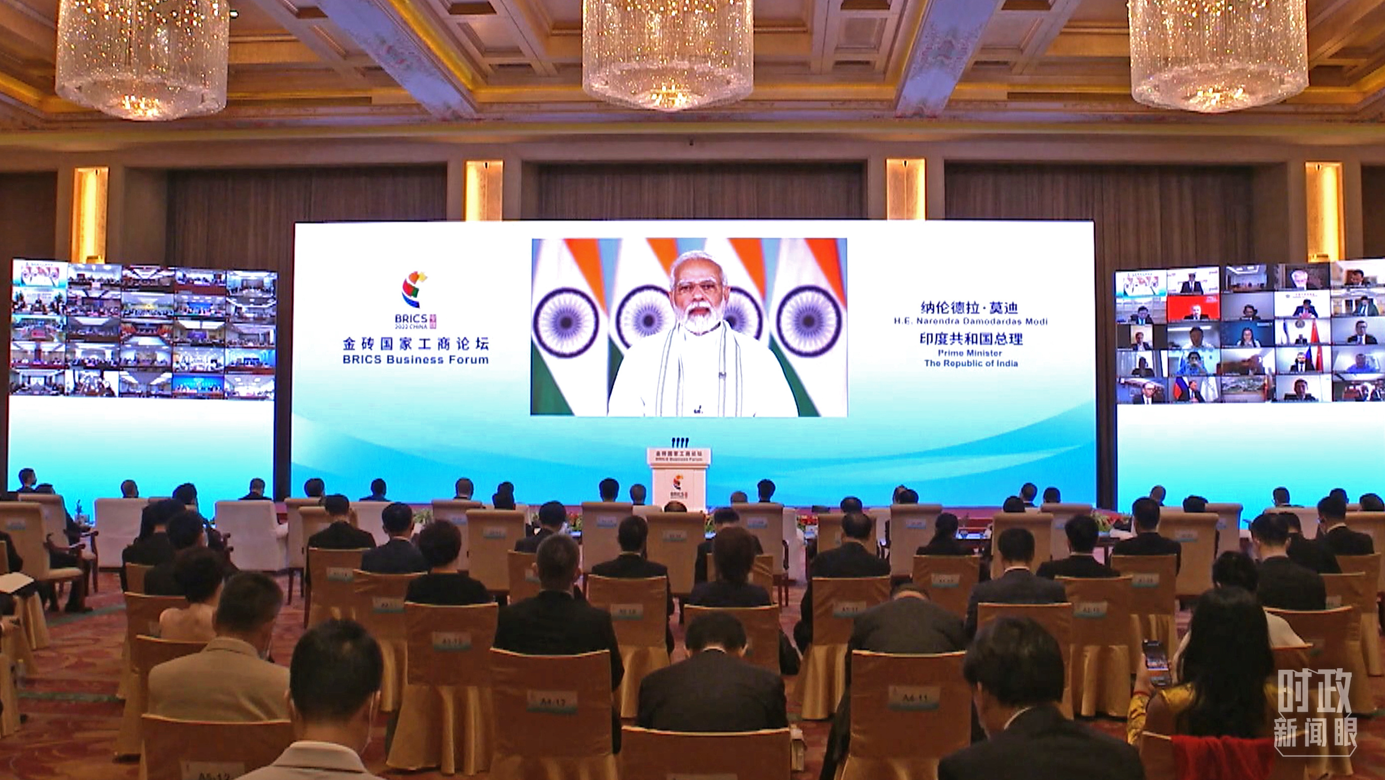 時(shí)隔五年,中國(guó)再次作為主席國(guó)主辦金磚會(huì)晤。今年金磚國(guó)家工商論壇以線(xiàn)上線(xiàn)下相結(jié)合的方式舉行。金磚五國(guó)領(lǐng)導(dǎo)人齊聚當(dāng)晚的論壇開(kāi)幕式,南非總統(tǒng)拉馬福薩、巴西總統(tǒng)博索納羅、俄羅斯總統(tǒng)普京、印度總理莫迪也以視頻方式出席并致辭。