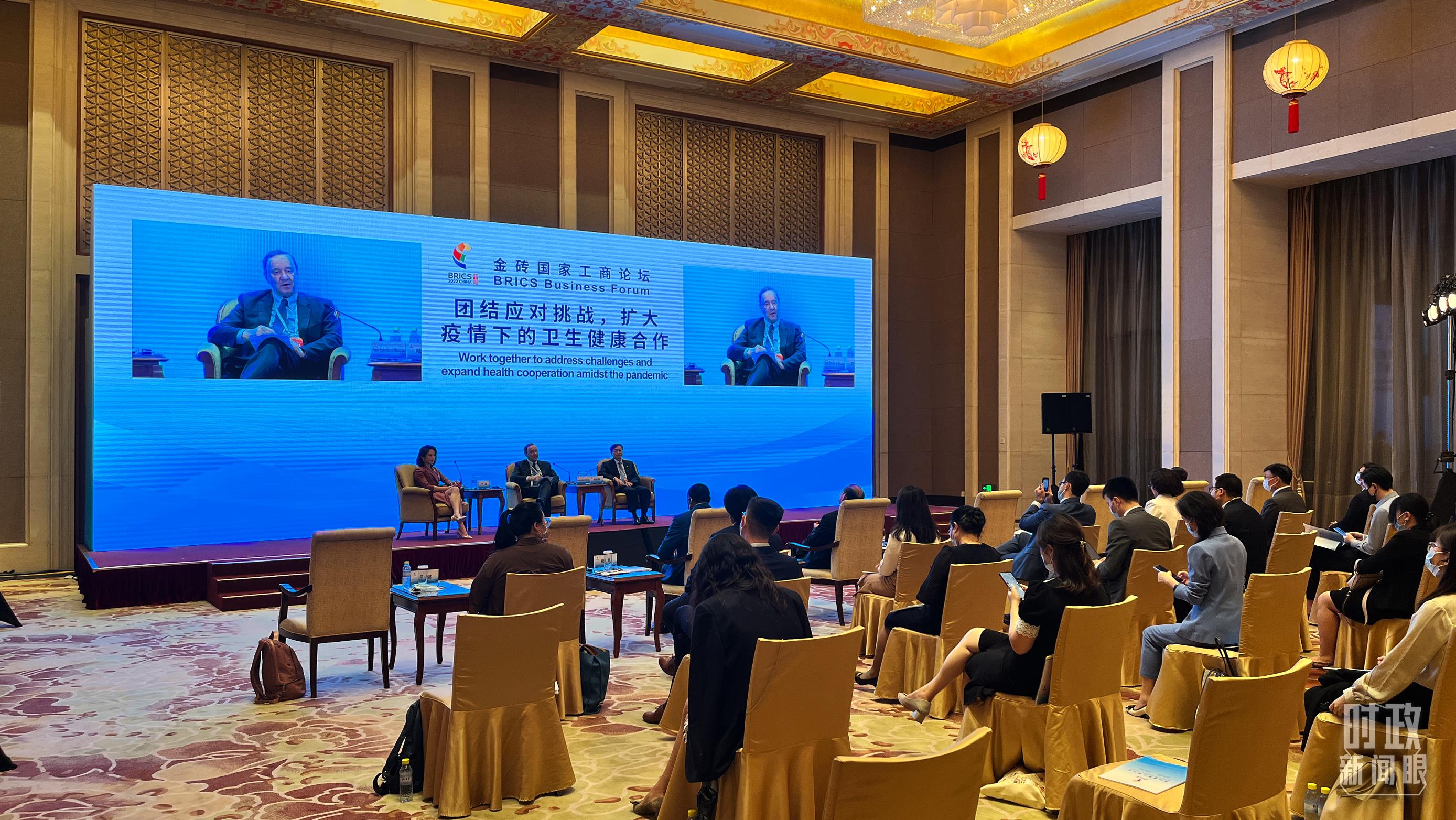 △2022年金磚國(guó)家工商論壇還設(shè)置了5個(gè)專(zhuān)題研討議題,這是主題為“團(tuán)結(jié)應(yīng)對(duì)挑戰(zhàn),擴(kuò)大疫情下的衛(wèi)生健康合作”專(zhuān)題研討分會(huì)場(chǎng)。(總臺(tái)央視記者陸泓宇拍攝)