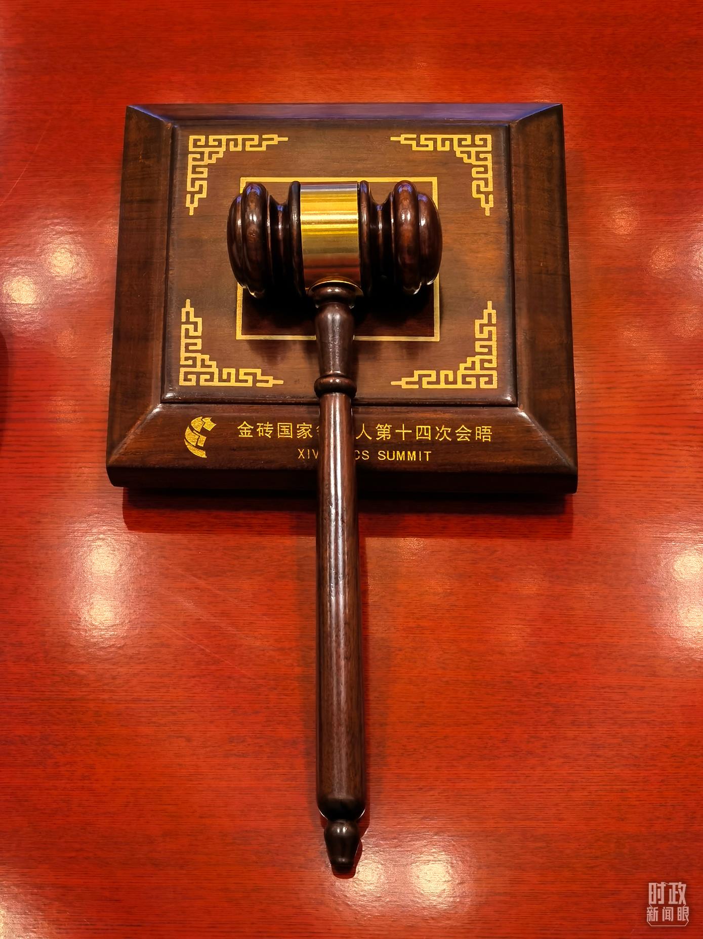 △這是當(dāng)天的對(duì)話會(huì)發(fā)表主席聲明時(shí),習(xí)近平所敲的木槌。(總臺(tái)央視記者石丞拍攝)