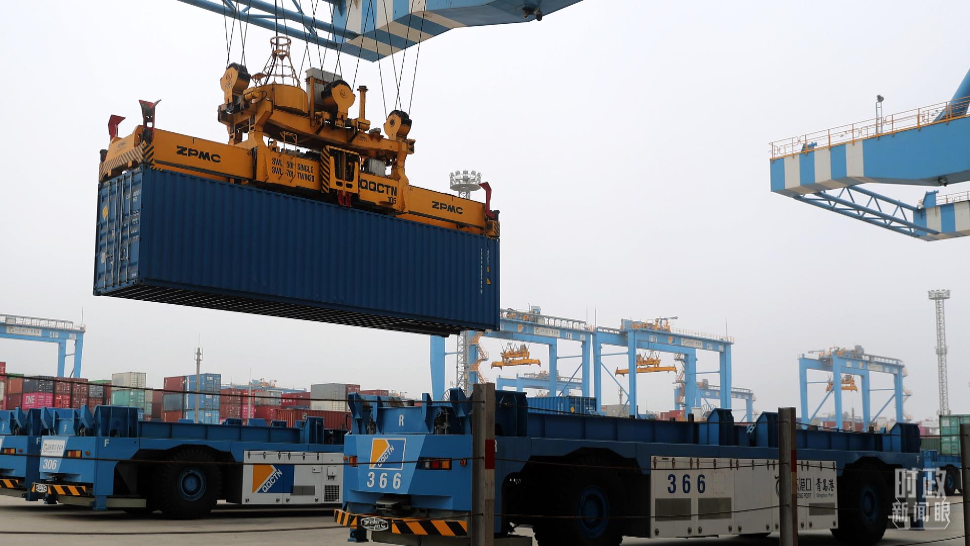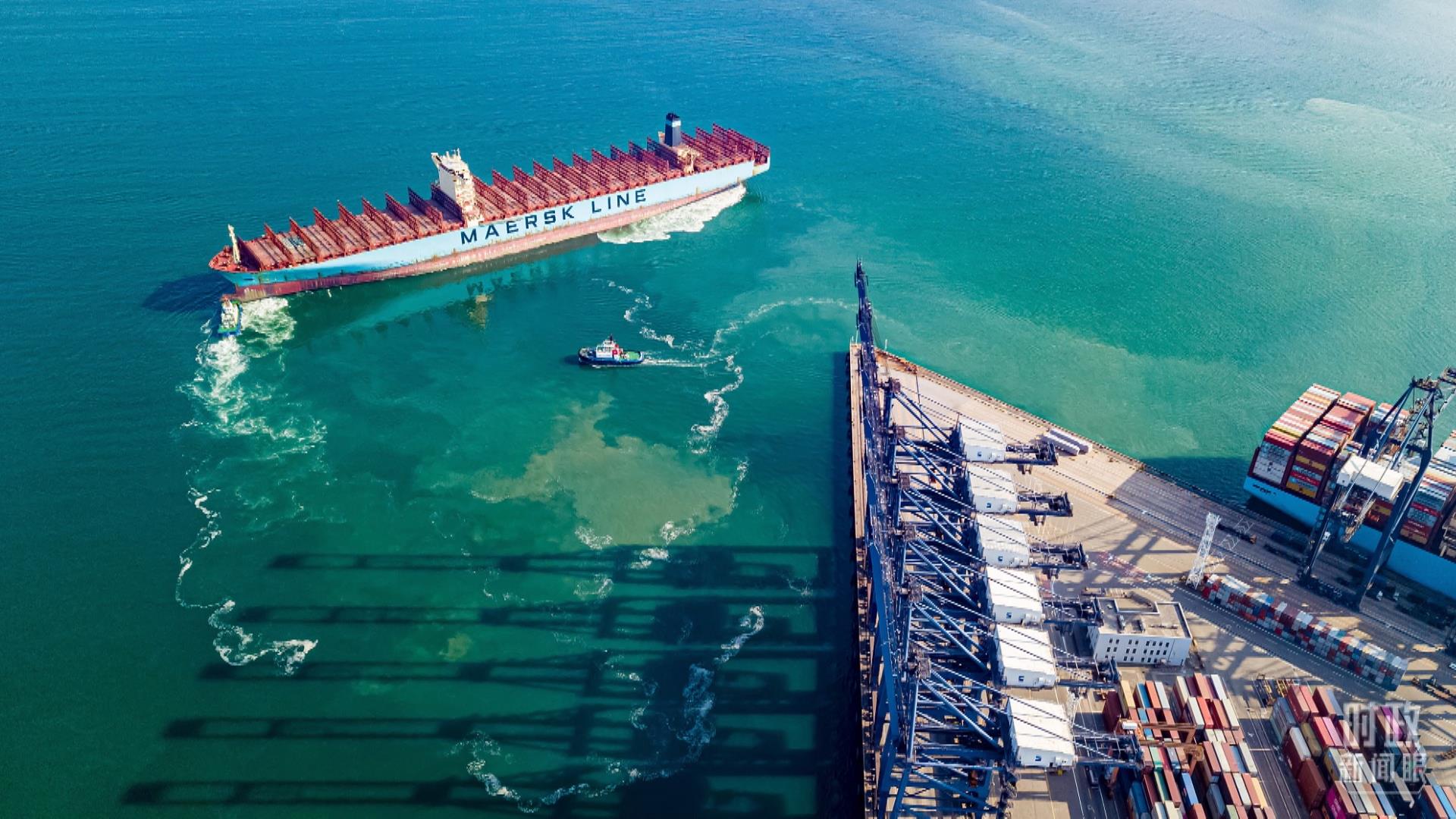 △2022年6月,山東自貿(mào)區(qū),一艘貨輪正在裝載貨物出口南非。(圖/視覺中國(guó))