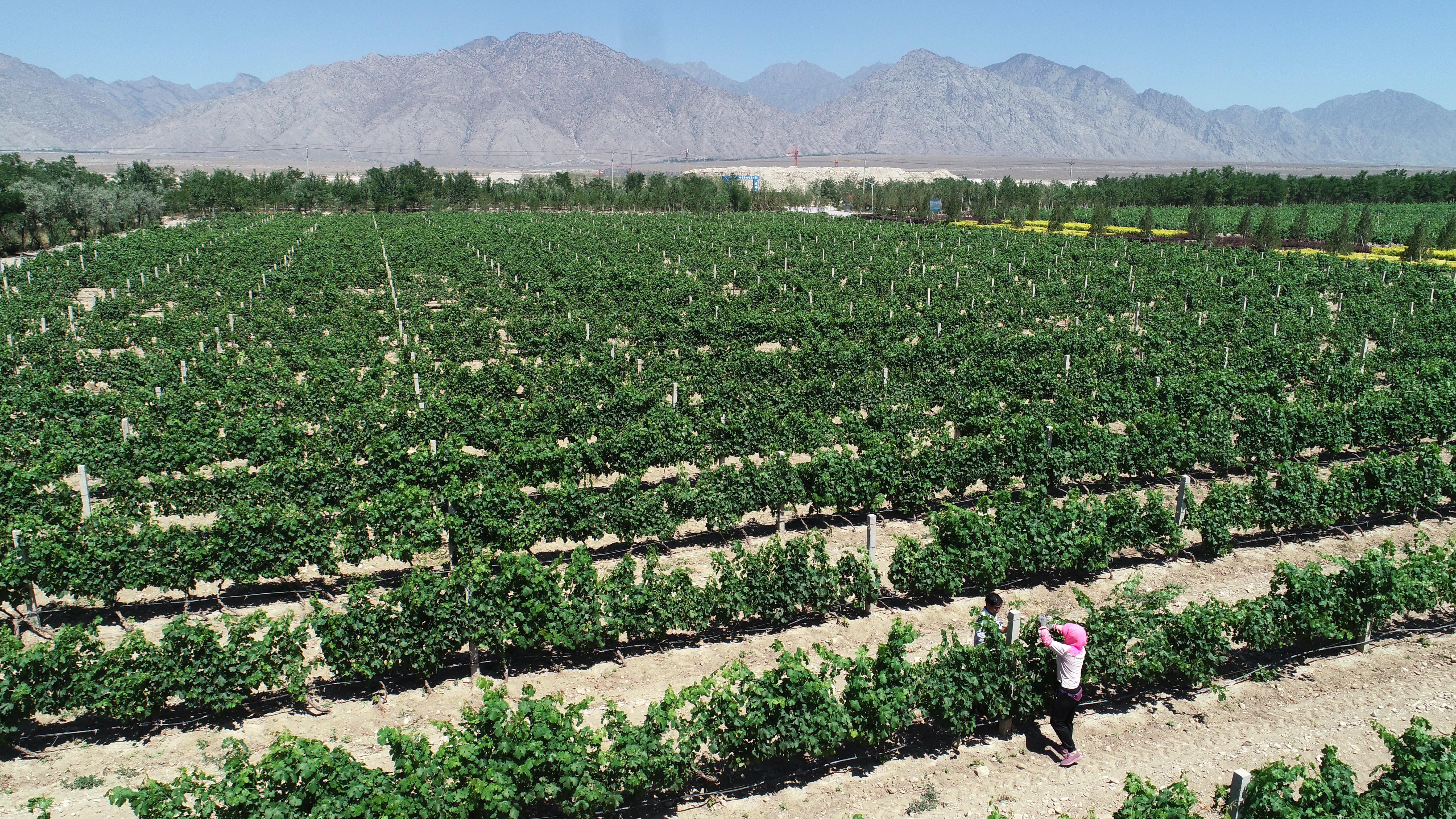 “賀蘭山下果園成,塞北江南舊有名。”夏日的賀蘭山東麓,翠綠的葡萄園沿山勢(shì)綿延南北,一眼望不到頭。
