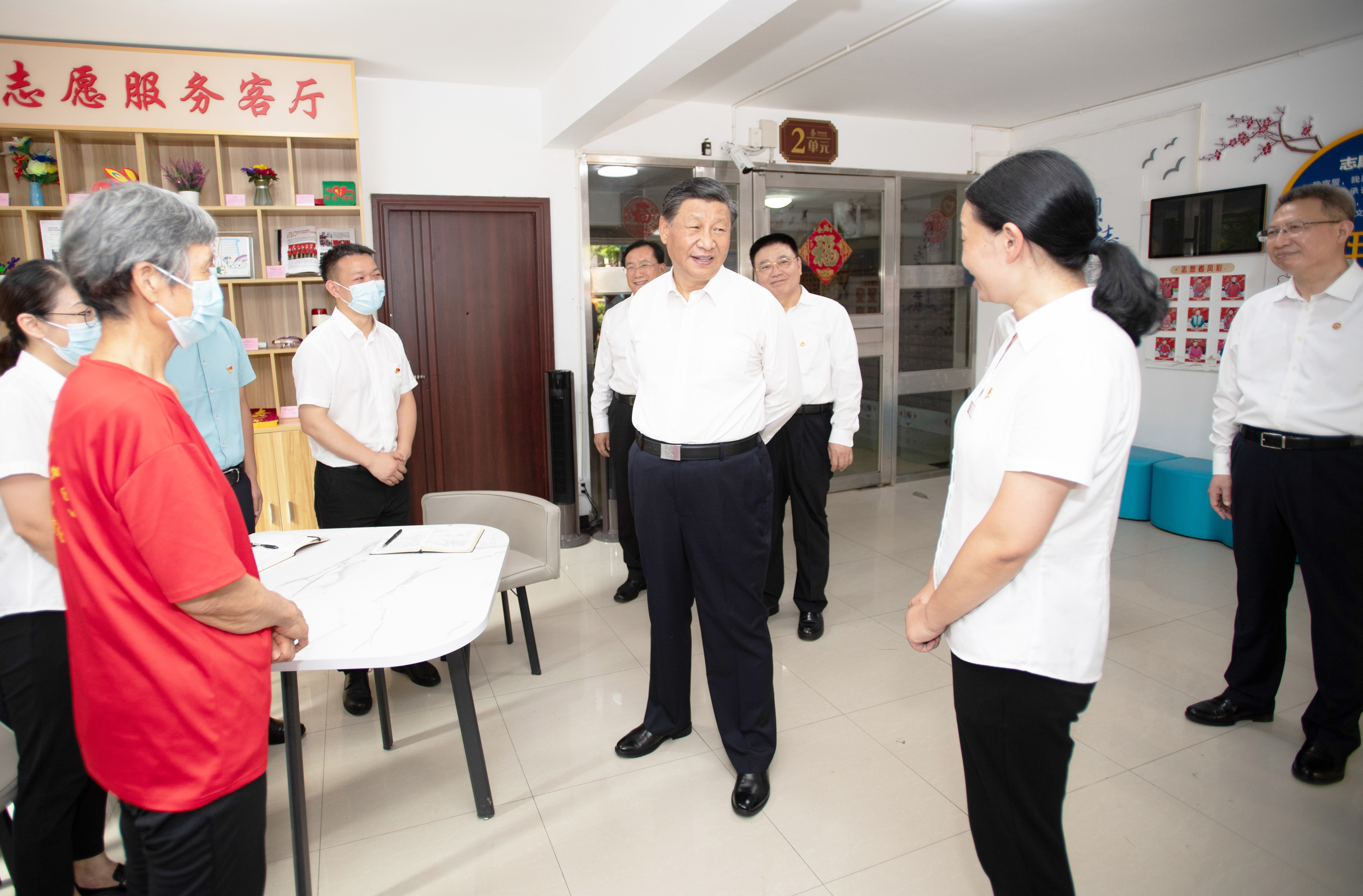 6月28日,中共中央總書記、國家主席、中央軍委主席習近平在湖北省武漢市考察。這是28日下午,習近平在東湖高新區(qū)左嶺街道智苑社區(qū)黨群服務中心,向社區(qū)工作者了解黨建引領(lǐng)基層社區(qū)治理及便民服務等情況,并同前來辦事的老年人親切交談?! ?/p>