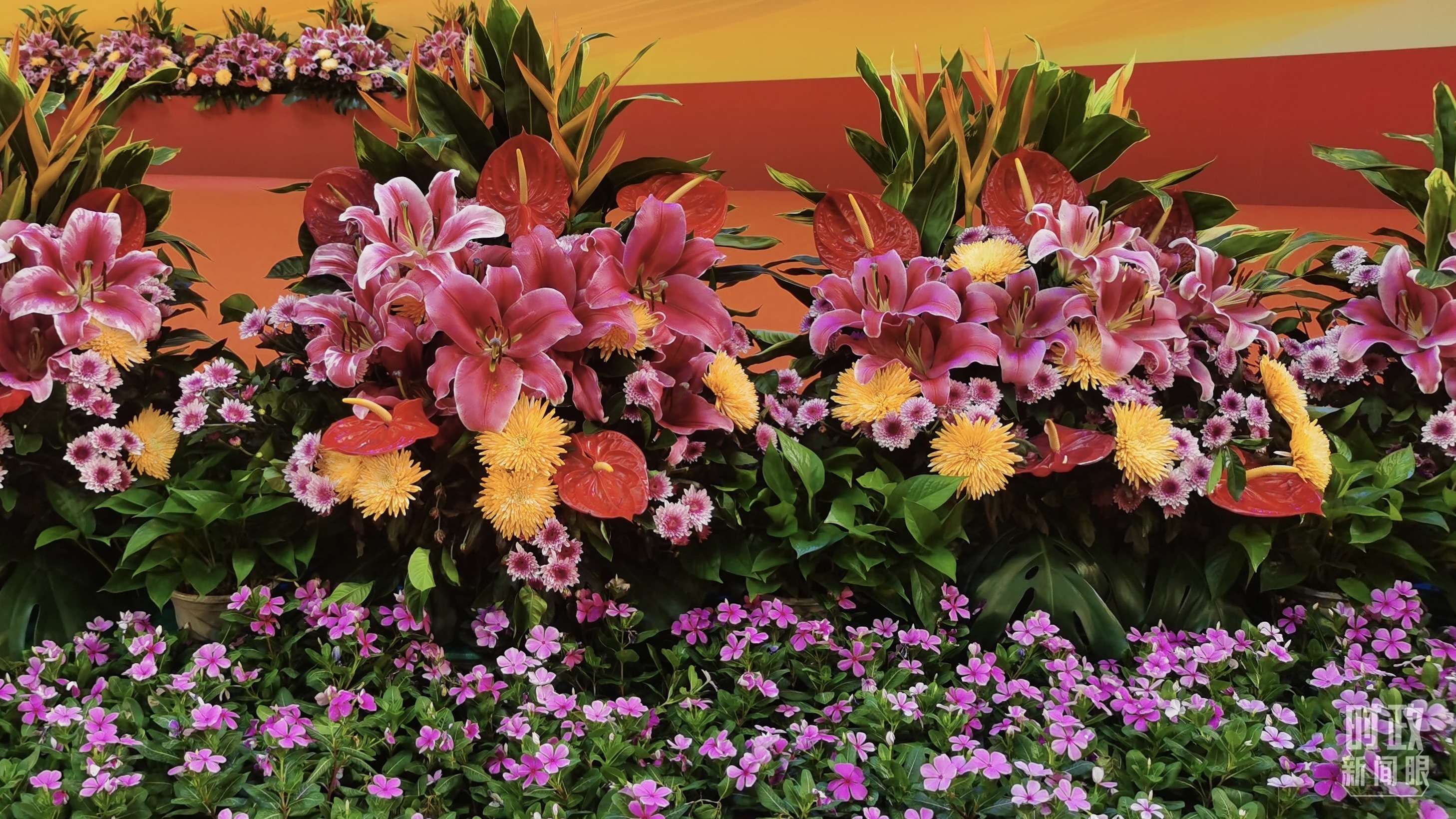 △慶祝大會現(xiàn)場擺放的鮮花。(總臺央視記者范凱拍攝)