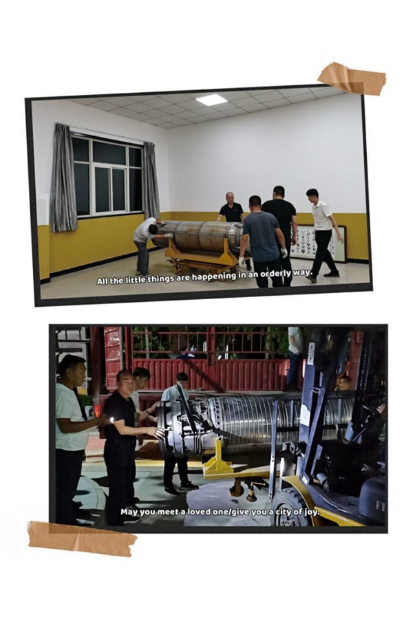 卸完設備已經(jīng)夜里十一點多,董事長仍堅持在一線指導,廢寢忘食,不辭勞苦,看著新進的設備,董事長如獲至寶,既欣慰又激動。