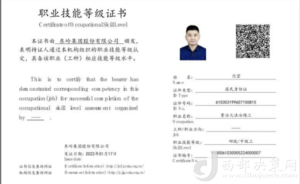 沈瑩,是東嶺冶煉公司的一名技術(shù)員,去年11月,他通過參加公司舉辦的新型學(xué)徒制培訓(xùn)班,考取了“重冶火法冶煉工”中級工職業(yè)技能等級證書,不僅得到了政府1500元獎勵補(bǔ)貼,還在今年3月被公司從技術(shù)員提拔為車間技術(shù)副主任助理。