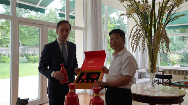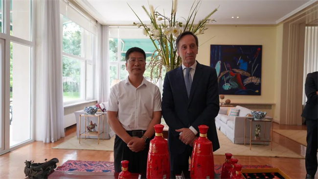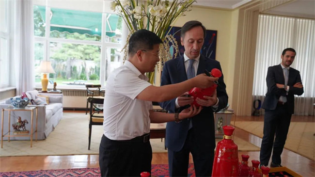 陜西西鳳酒股份有限公司副總經(jīng)理高洪濤一行在葡萄牙駐華大使官邸交流現(xiàn)場