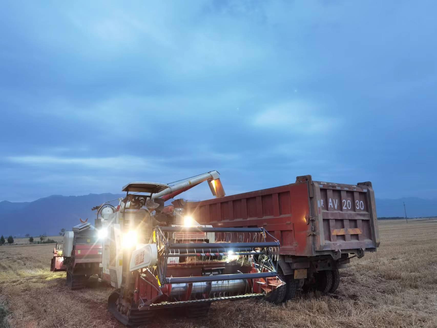 6月9日傍晚,長豐農(nóng)機專業(yè)合作社在收割麥子。王海濤攝