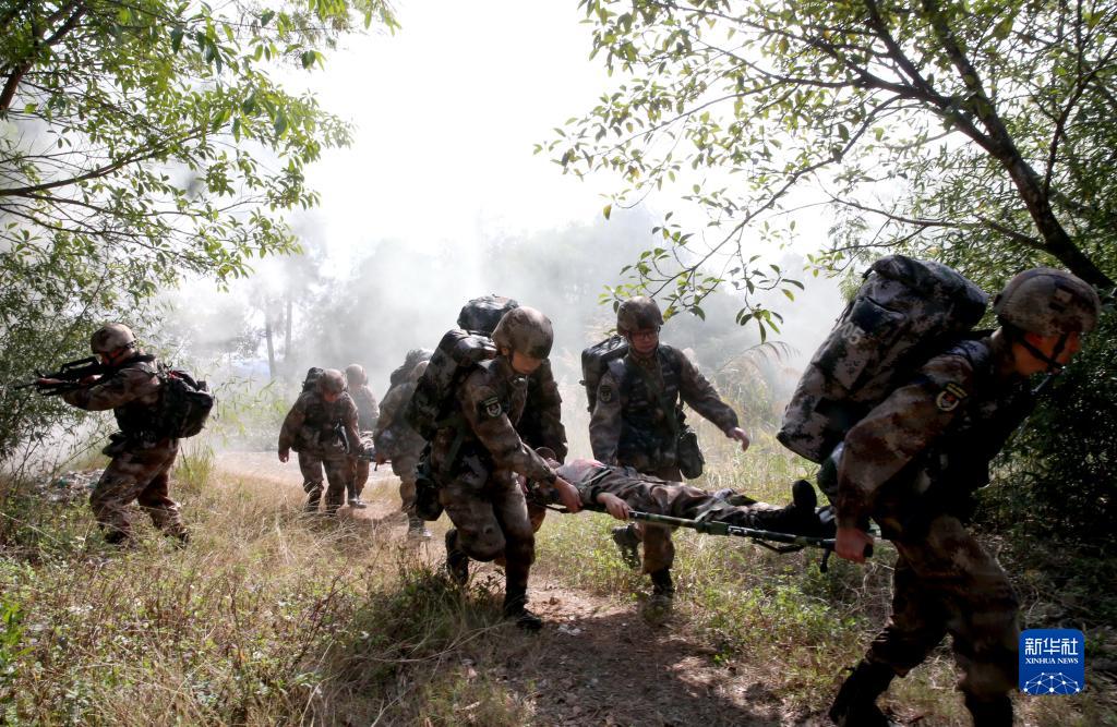 2022年1月4日,無(wú)錫聯(lián)勤保障中心第910醫(yī)院將野戰(zhàn)醫(yī)療隊(duì)拉到閩南某山區(qū),在陌生地域開(kāi)展實(shí)戰(zhàn)化衛(wèi)勤訓(xùn)練。新華社發(fā)(巴濤 攝)