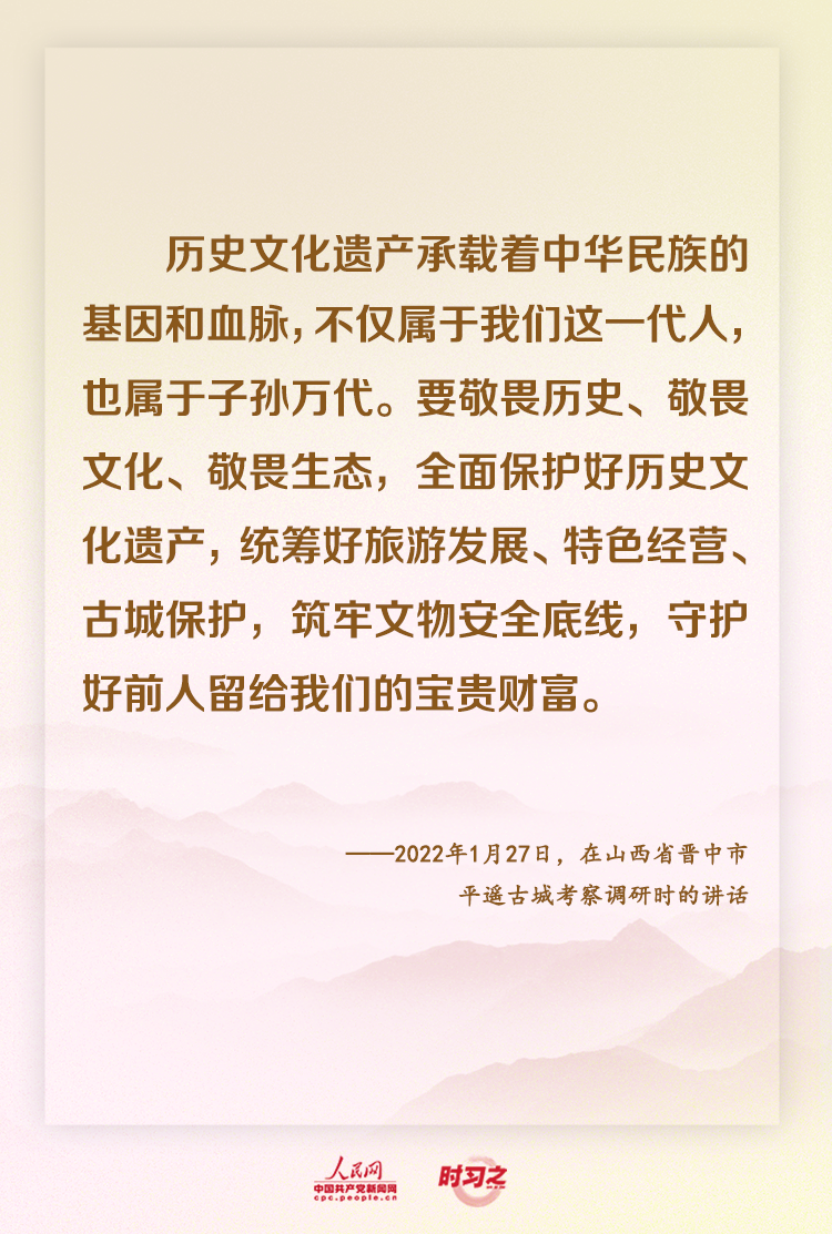 敬畏歷史、敬畏文化、敬畏生態(tài)——習(xí)近平用三個“敬畏”指出保護好歷史文化遺產(chǎn)的重要性。