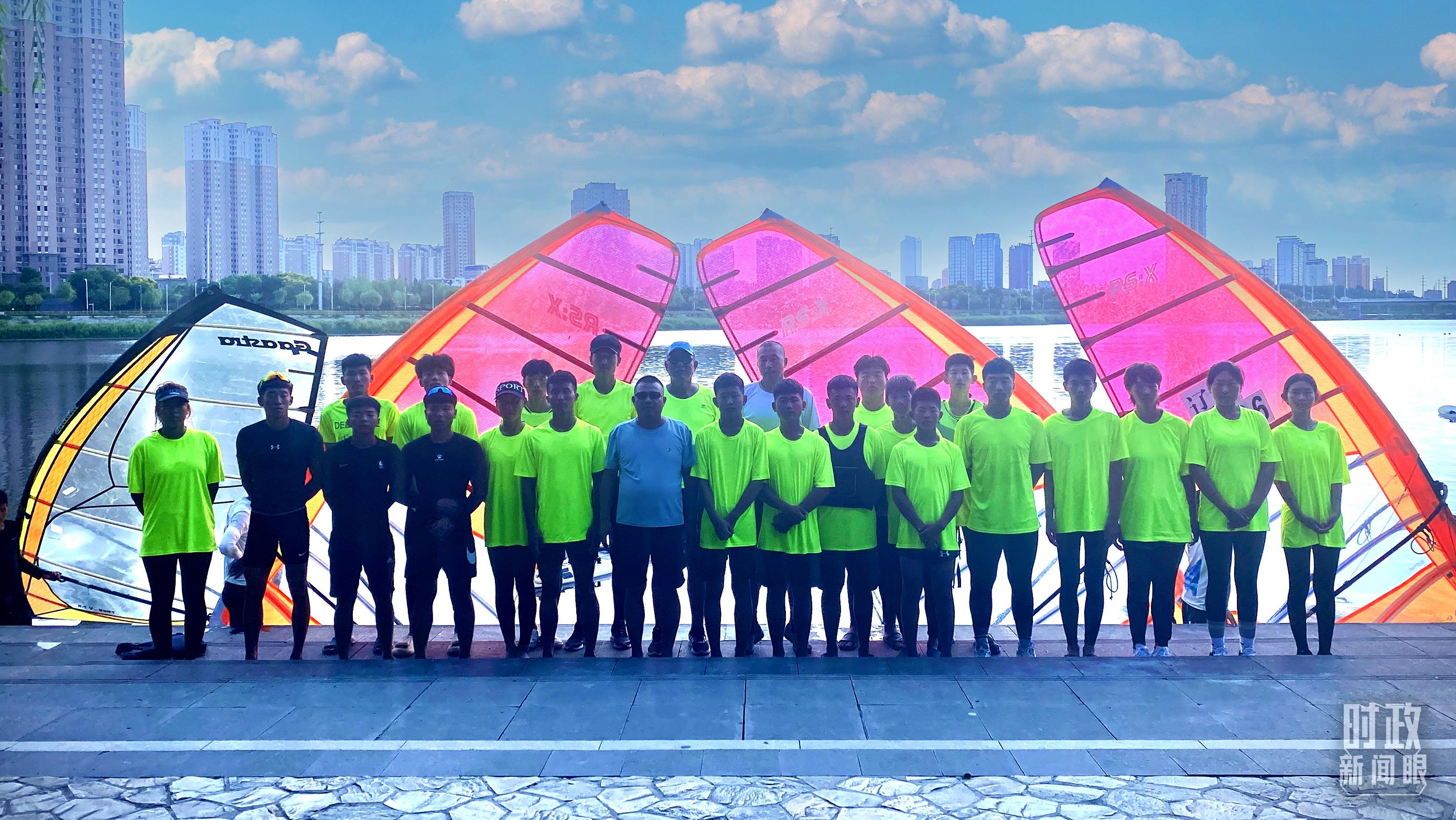△遼寧錦州水上運動項目中心運動員合影。(總臺央視記者李輝拍攝)