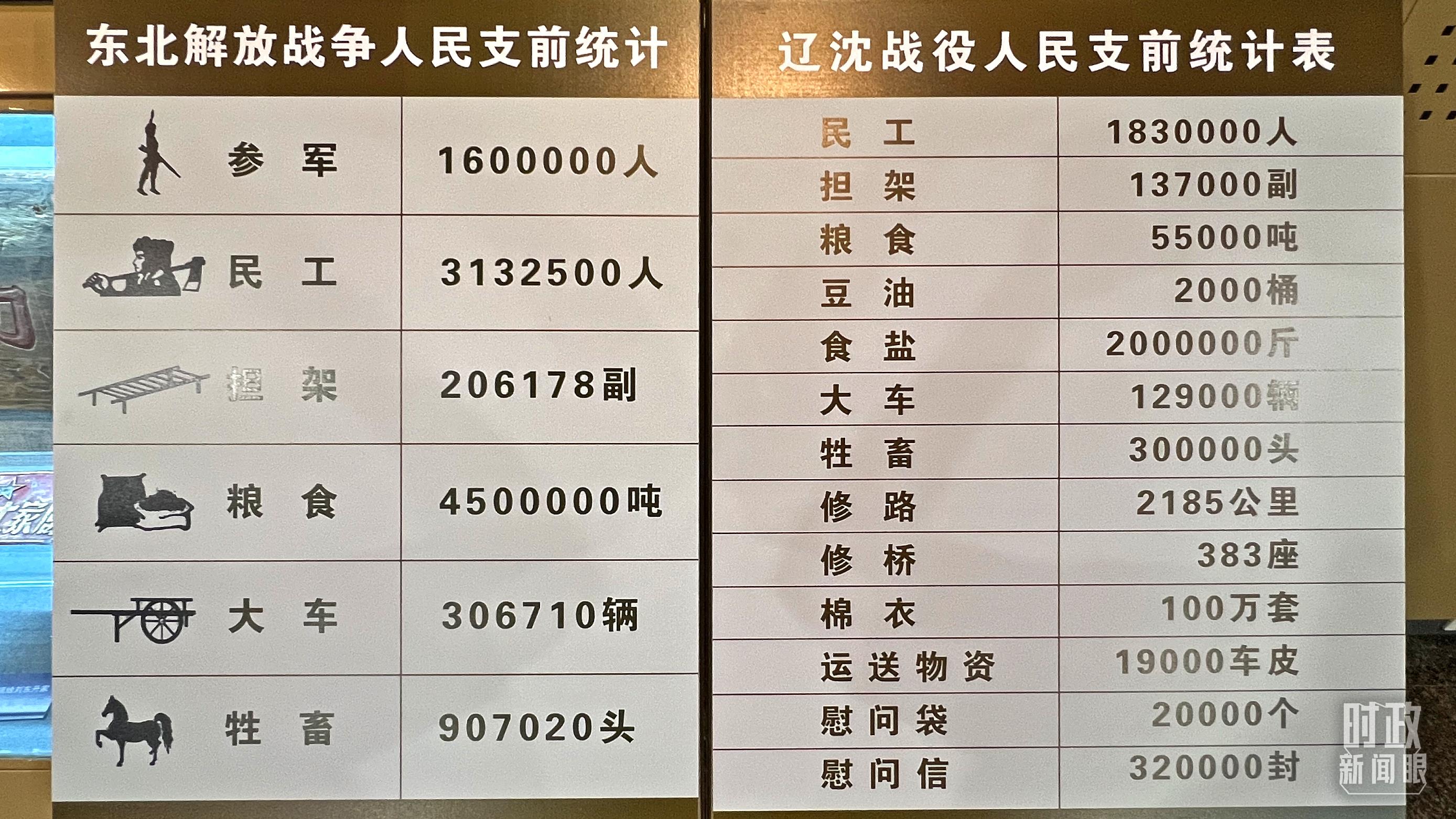 △遼沈戰(zhàn)役紀念館展出,東北解放戰(zhàn)爭和遼沈戰(zhàn)役人民支前統(tǒng)計表。(總臺央視記者邢彬拍攝)