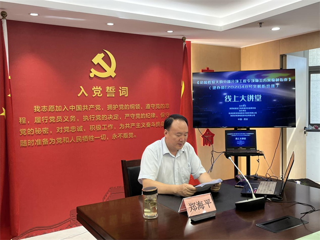 8月12日上午,陜西省建設工程質量安全監(jiān)督總站黨支部堅持以黨建引領安全方面各項工作,組織開展《危險性較大的分部分項工程專項施工方案編制指南》線上講座。此次講座邀請了杭州品茗安控信息技術股份有限公司專家講師鄧文梓教授做詳細培訓,陜西省各級質量安全監(jiān)督機構分別在各分會場通過視頻直播的方式相聚云端。各施工單位、監(jiān)理單位及在建項目的安全管理人員、技術負責人等共計一萬余人參與學習。