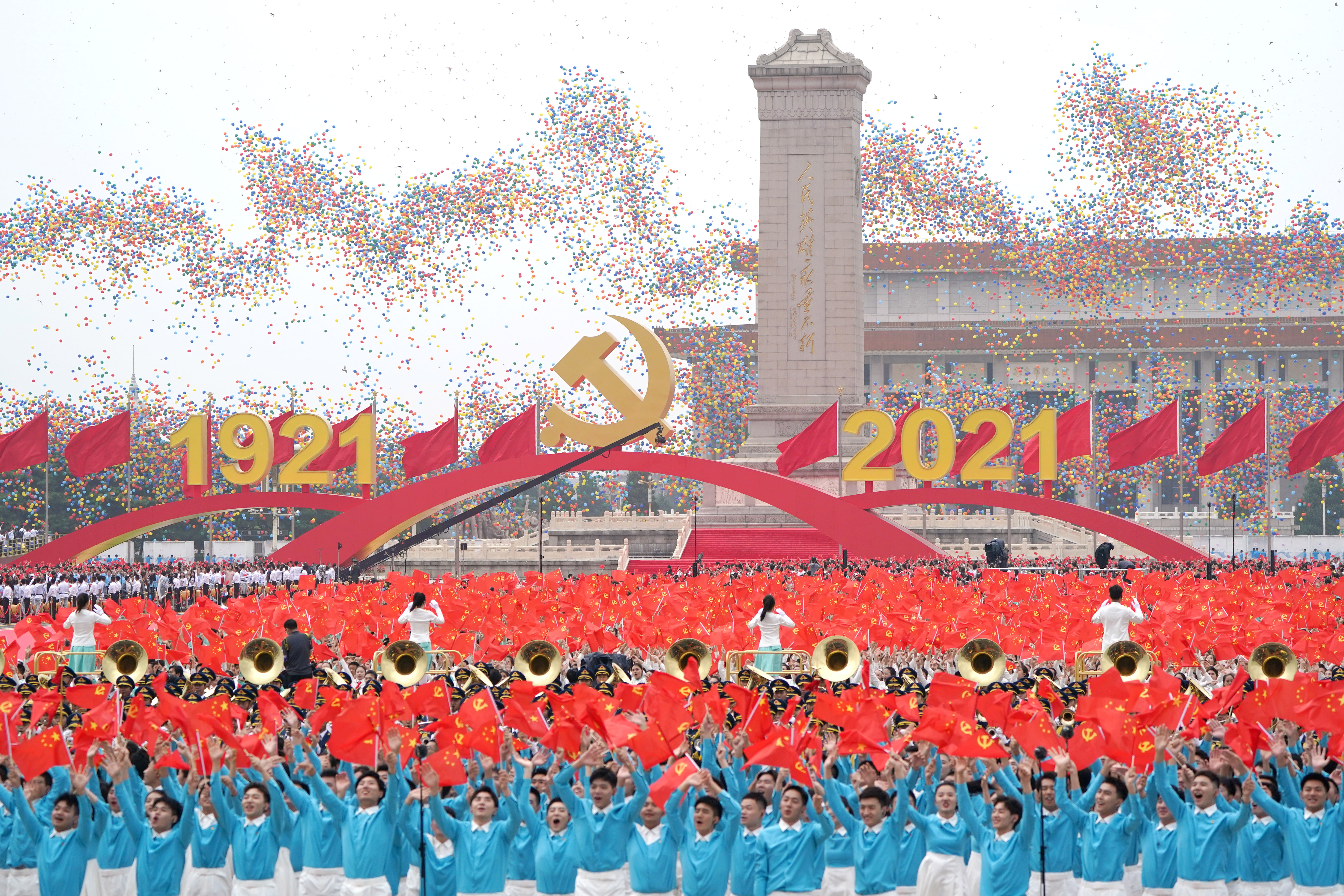 2021年7月1日上午,慶祝中國共產(chǎn)黨成立100周年大會在北京天安門廣場隆重舉行。這是慶祝大會現(xiàn)場放飛氣球。新華社記者 陳曄華 攝