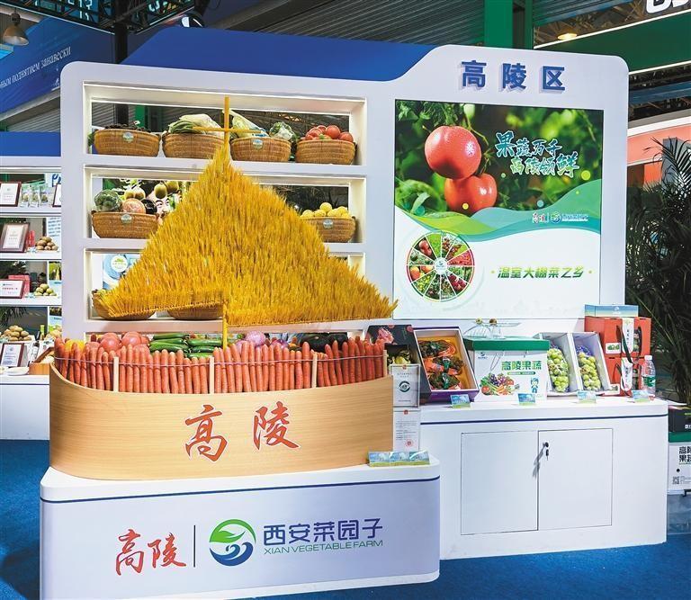 西安“菜園子”高陵區(qū)為本屆農(nóng)高會帶來了“帆船”造型的果蔬大菜籃,只見這艘由小麥為帆,“乘坐”著紅黃彩椒、國家地理標志耿鎮(zhèn)胡蘿卜、貝貝南瓜、洋蔥、青翠乳瓜、水果西紅柿的“帆船”仿佛正揚帆起航、乘風(fēng)破浪,昭示著西安市春夏秋冬四季蔬果供應(yīng)不斷,市民群眾的菜籃子、米袋子、果盤子豐富多彩,生活蒸蒸日上。
