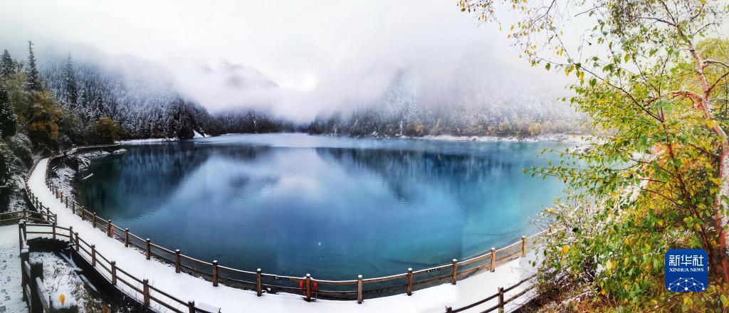 這是10月7日在世界自然遺產(chǎn)地九寨溝拍攝的雪后景色。新華社發(fā)(梁楓 攝)