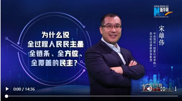 十年非凡成就,蘊(yùn)藏深刻啟示。如何用中國(guó)理論闡釋中國(guó)實(shí)踐?新華網(wǎng)聯(lián)合中央黨校(國(guó)家行政學(xué)院)國(guó)家高端智庫(kù),推出“思客講堂·黨校公開(kāi)課(第三季)”《以“理”服人:十年的十個(gè)“為什么”》。十位黨校青年教師通過(guò)十集理論短視頻,帶你探究非凡成就背后的“中國(guó)密碼”。本期讓我們跟隨中央黨校(國(guó)家行政學(xué)院)政法教研部教授宋雄偉,感受全過(guò)程人民民主在中國(guó)的生動(dòng)實(shí)踐。