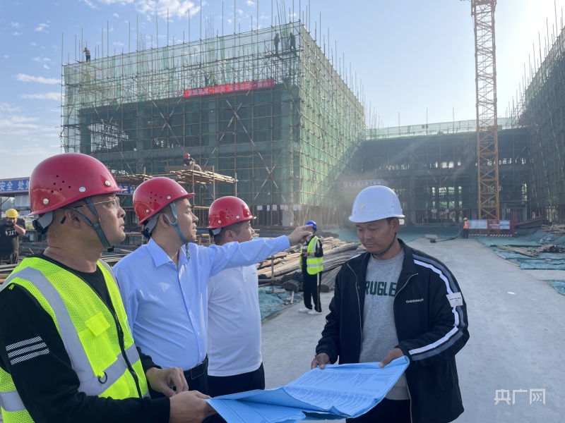 張留民(左二)在電源器件生產(chǎn)項目建設(shè)現(xiàn)場(央廣網(wǎng)發(fā) 殷吉星 攝)