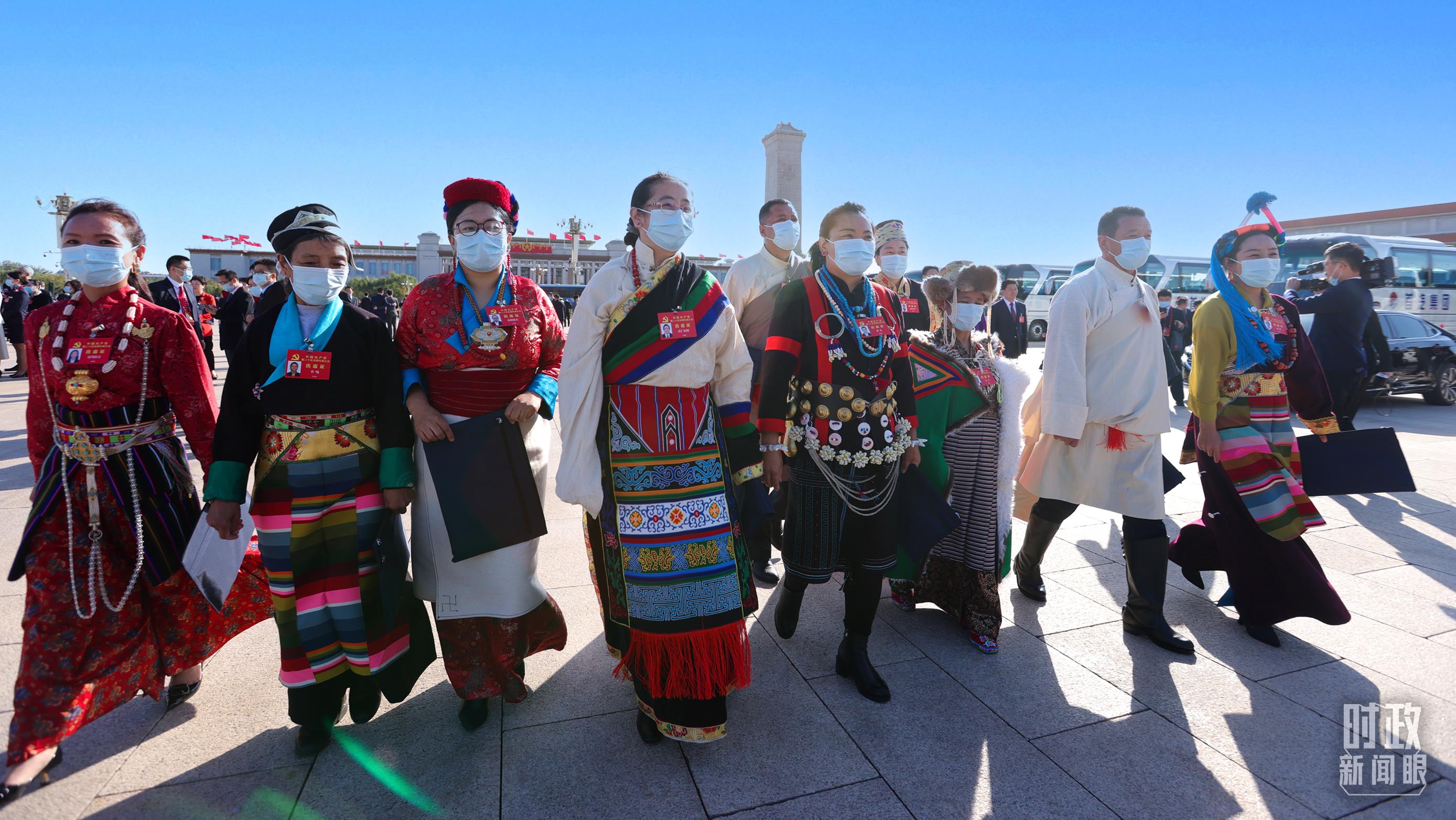 △正在步入會(huì)場(chǎng)的西藏代表團(tuán)代表,左二是卓嘎,去年她獲頒“七一勛章”。(總臺(tái)央視記者魏幫軍拍攝)
