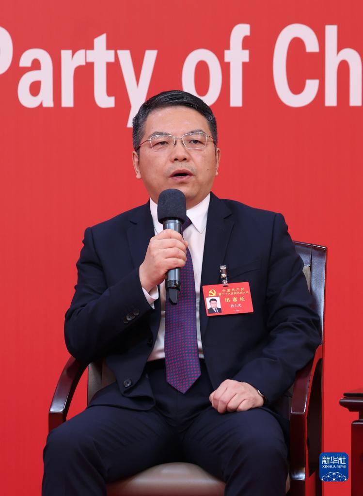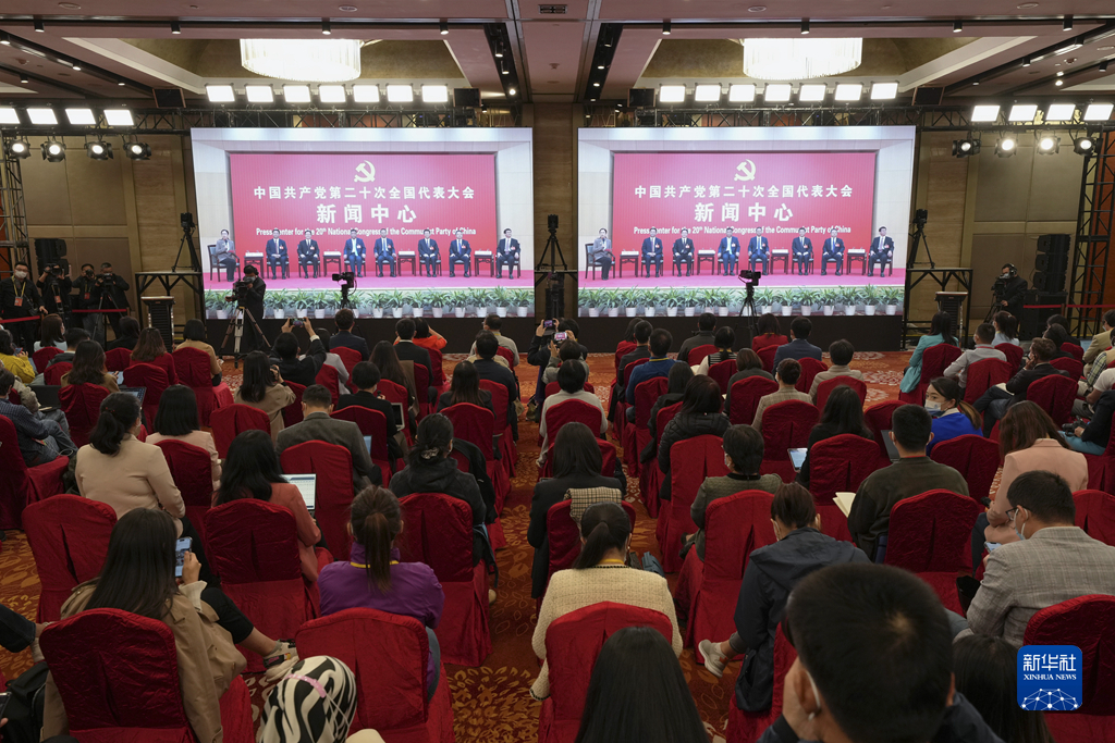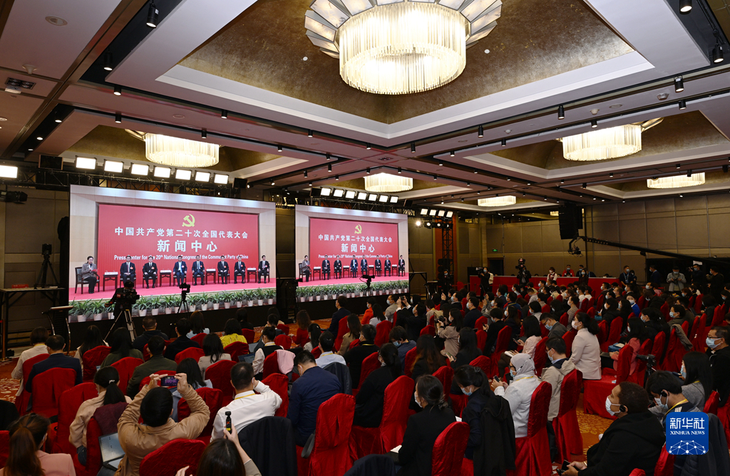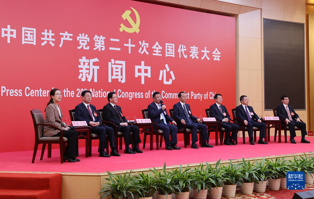 10月19日,中國共產(chǎn)黨第二十次全國代表大會新聞中心舉行集體采訪。山東、河南、湖北、湖南、廣東、廣西、海南代表團新聞發(fā)言人出席,介紹代表團學(xué)習(xí)討論二十大報告情況,并回答記者提問。新華社記者 陳建力 攝