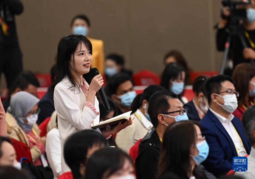 這是記者在分會場舉手提問。新華社記者 金良快 攝