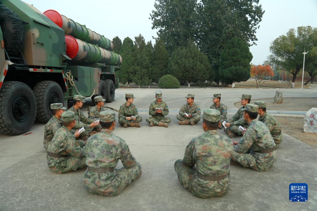 中共中央總書記、國家主席、中央軍委主席習(xí)近平24日下午出席軍隊(duì)領(lǐng)導(dǎo)干部會(huì)議時(shí)發(fā)表的重要講話,在解放軍和武警部隊(duì)引起強(qiáng)烈反響。這是中部戰(zhàn)區(qū)空軍“模范地空導(dǎo)彈營”開展“鳴鏑講堂”交流活動(dòng),積極組織官兵學(xué)習(xí)習(xí)主席重要講話(10月25日攝)。新華社發(fā)(趙勝之 攝)