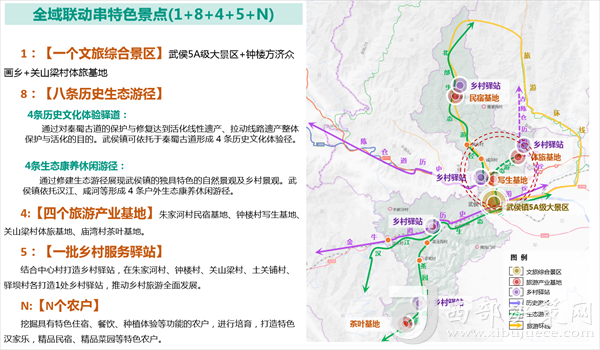 做活三產(chǎn),促進(jìn)三產(chǎn)融合。采用鎮(zhèn)區(qū)—驛道—基地—驛站—農(nóng)戶體系模式,打造1個(gè)綜合景區(qū),8條鄉(xiāng)村驛道,4個(gè)旅游產(chǎn)業(yè)基地,5個(gè)鄉(xiāng)村驛站,N個(gè)特色農(nóng)戶。即通過諸葛亮讀書臺、老縣衙恢復(fù)、諸葛文化旅游度假景區(qū)、綜合文化會展中心建設(shè)項(xiàng)目,豐富景區(qū)旅游產(chǎn)品;依托古道,游步道打造8條鄉(xiāng)村驛道;打造武侯鎮(zhèn)朱家河村民宿基地、武侯鎮(zhèn)鐘樓村寫生基地、武侯鎮(zhèn)關(guān)山梁村體旅基地、武侯鎮(zhèn)廟灣茶葉基地;依托長安畫派領(lǐng)軍人物方濟(jì)眾名人效應(yīng),打造鐘樓畫鄉(xiāng)品牌;在中心村結(jié)合村莊公共空間分布情況打造5處鄉(xiāng)村驛站,提供休憩、停車、餐飲等旅游配套服務(wù)。(通訊員:張彬)