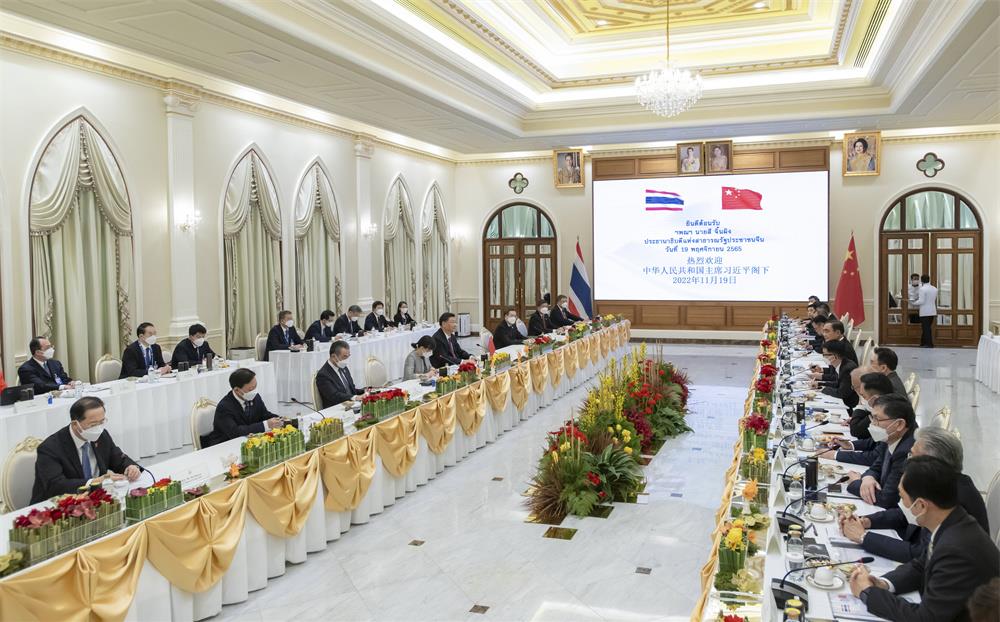 習(xí)近平指出,雙方要像走親戚一樣常來往、多走動,在涉及彼此核心利益和重大關(guān)切問題上繼續(xù)相互堅定支持。雙方要落實好未來5年《中泰戰(zhàn)略性合作共同行動計劃》,統(tǒng)籌推動各領(lǐng)域合作取得更多成果。要有效對接各自發(fā)展戰(zhàn)略,推動高質(zhì)量共建“一帶一路”不斷取得新成效。雙方要加強投資、貿(mào)易、旅游、基礎(chǔ)設(shè)施、產(chǎn)業(yè)園等傳統(tǒng)領(lǐng)域合作,同時不斷培育新增長點,推動數(shù)字經(jīng)濟、新能源汽車、科技創(chuàng)新等新領(lǐng)域合作取得積極進展。要加快中老泰三方鐵路合作,積極推進“中老泰聯(lián)通發(fā)展構(gòu)想”,重點加強基礎(chǔ)設(shè)施“硬聯(lián)通”,做好物流通關(guān)“軟聯(lián)通”,擴大泰國優(yōu)質(zhì)農(nóng)副產(chǎn)品輸華。中方愿同包括泰國在內(nèi)的各方一道,高質(zhì)量實施《區(qū)域全面經(jīng)濟伙伴關(guān)系協(xié)定》,讓這一全球最大自貿(mào)區(qū)安排釋放更大紅利。加大打擊跨境犯罪,深化追逃追贓合作。加強教育、醫(yī)療、扶貧等民生領(lǐng)域合作,通過多種方式交流減貧發(fā)展經(jīng)驗,推動兩國扶貧合作走深走實,辦成、辦好一批貼近群眾、服務(wù)基層的實事。要加強青年交流,使兩國人民心更近、情更深,豐富中泰命運共同體的人文內(nèi)涵。