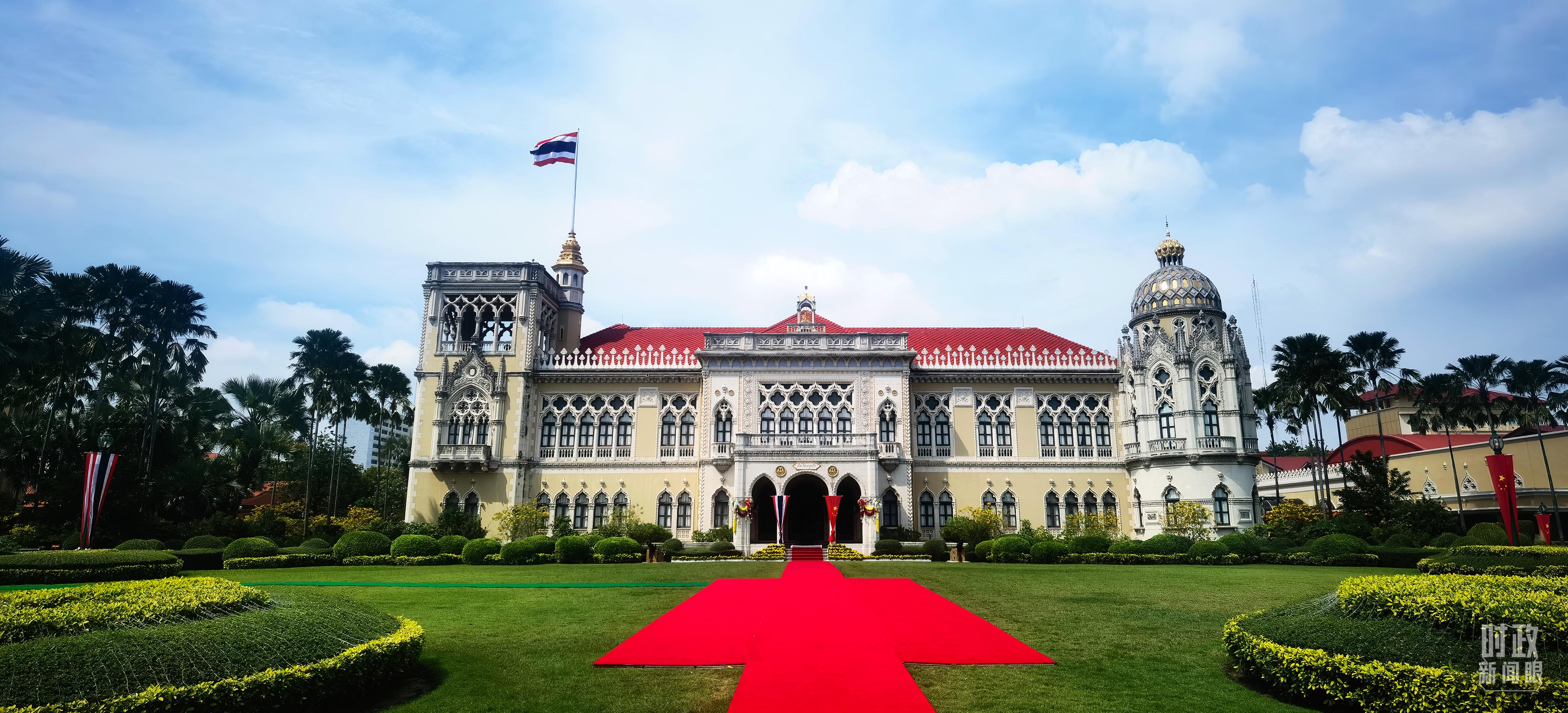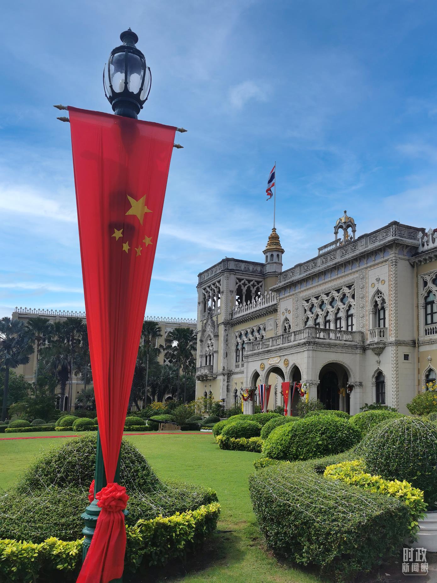 △曼谷總理府前的中國國旗。(總臺央視記者黃京輝拍攝)