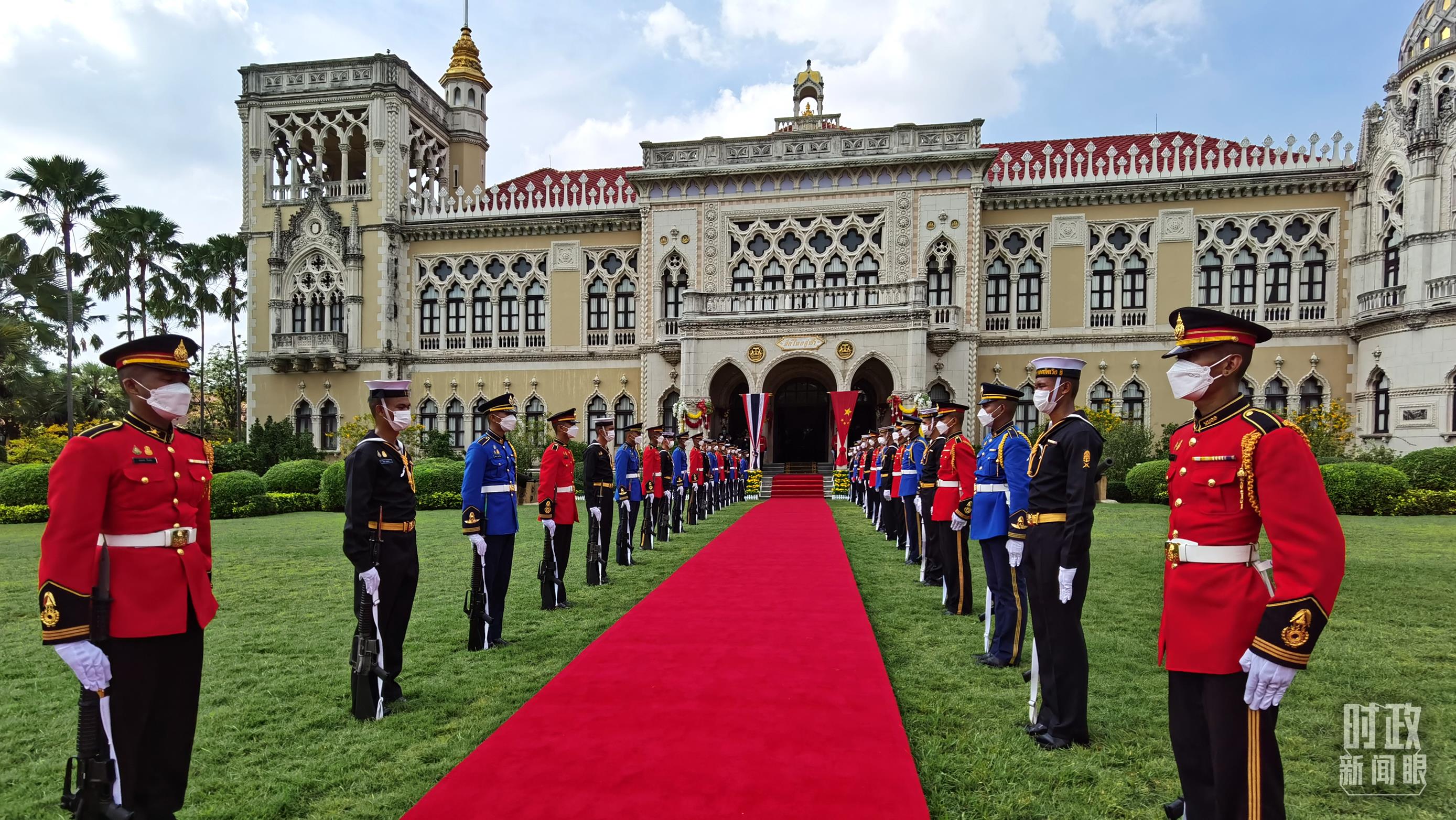 △曼谷總理府前整齊排列的儀仗隊(duì)。(總臺央視記者郭鴻拍攝)